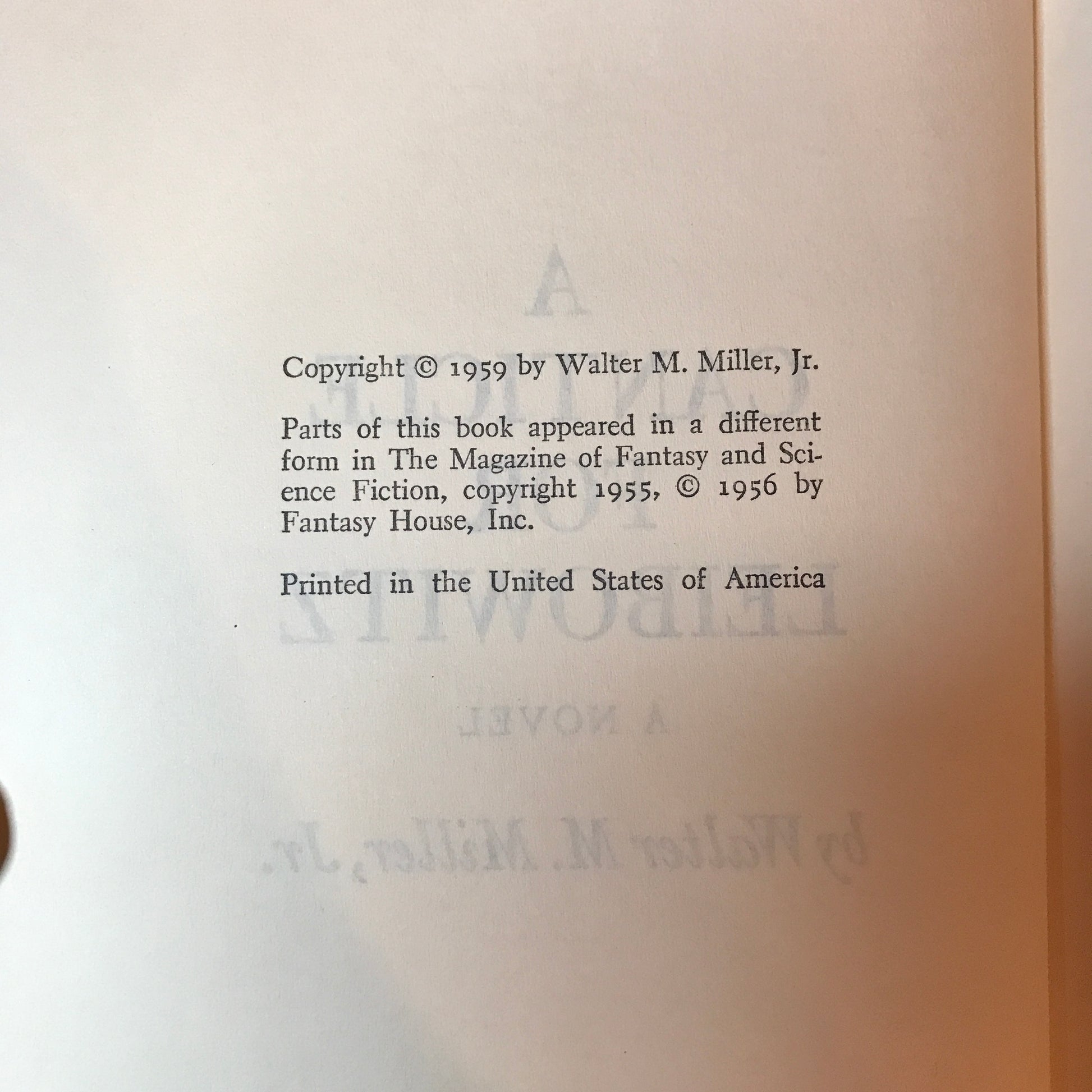 A Canticle for Leibowitz - Walter M. Miller, Jr. - Book Club Edition - 1959