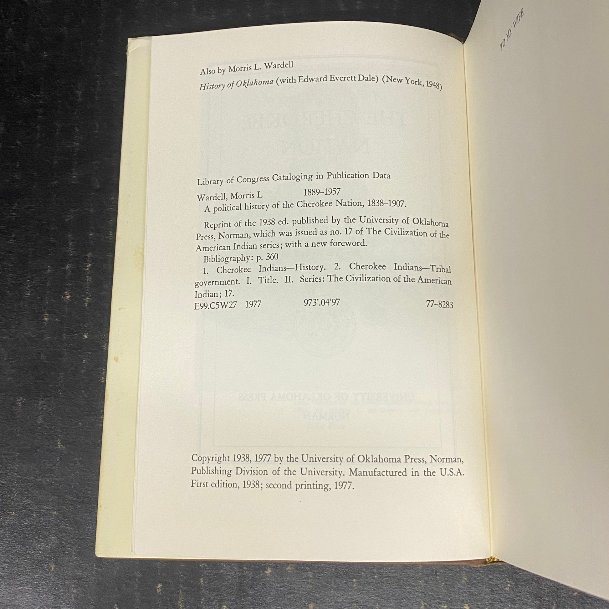 A Political History of the Cherokee Nation, 1838-1907 - Morris L. Wardell - 1977