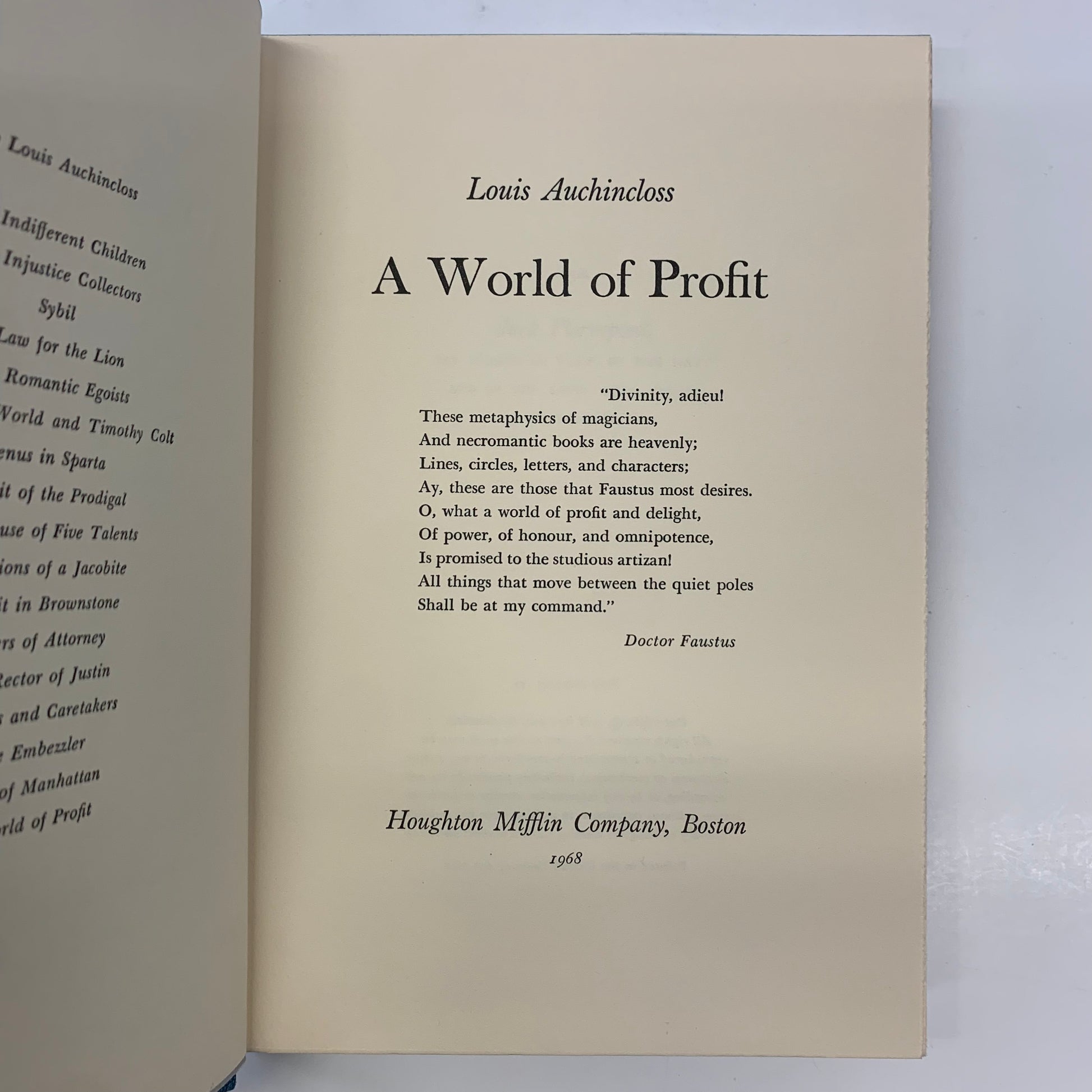 A World of Profit - Louis Auchincloss - First Edition - 1968