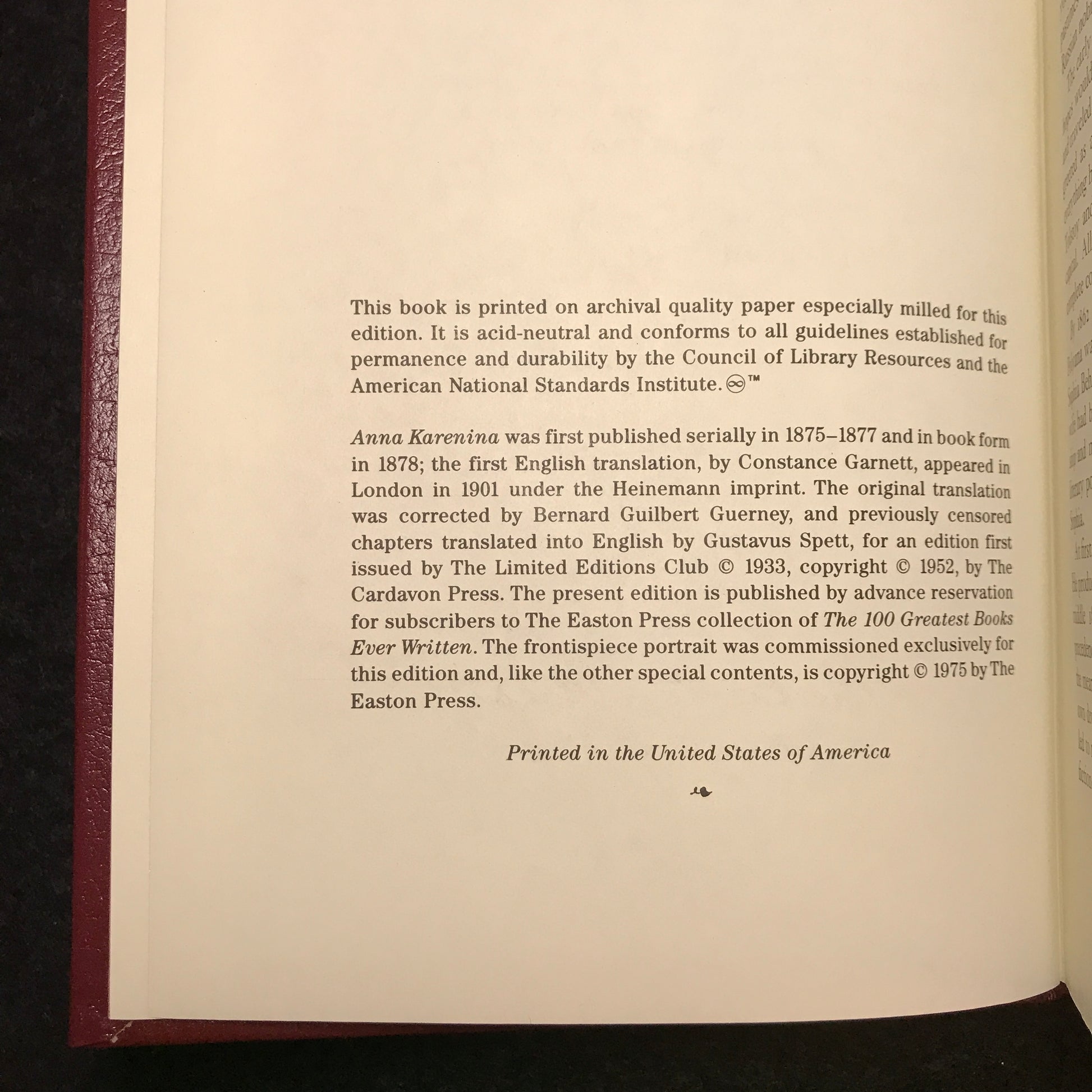 Anna Karenina - Easton Press - Leo Tolstoy - 1975
