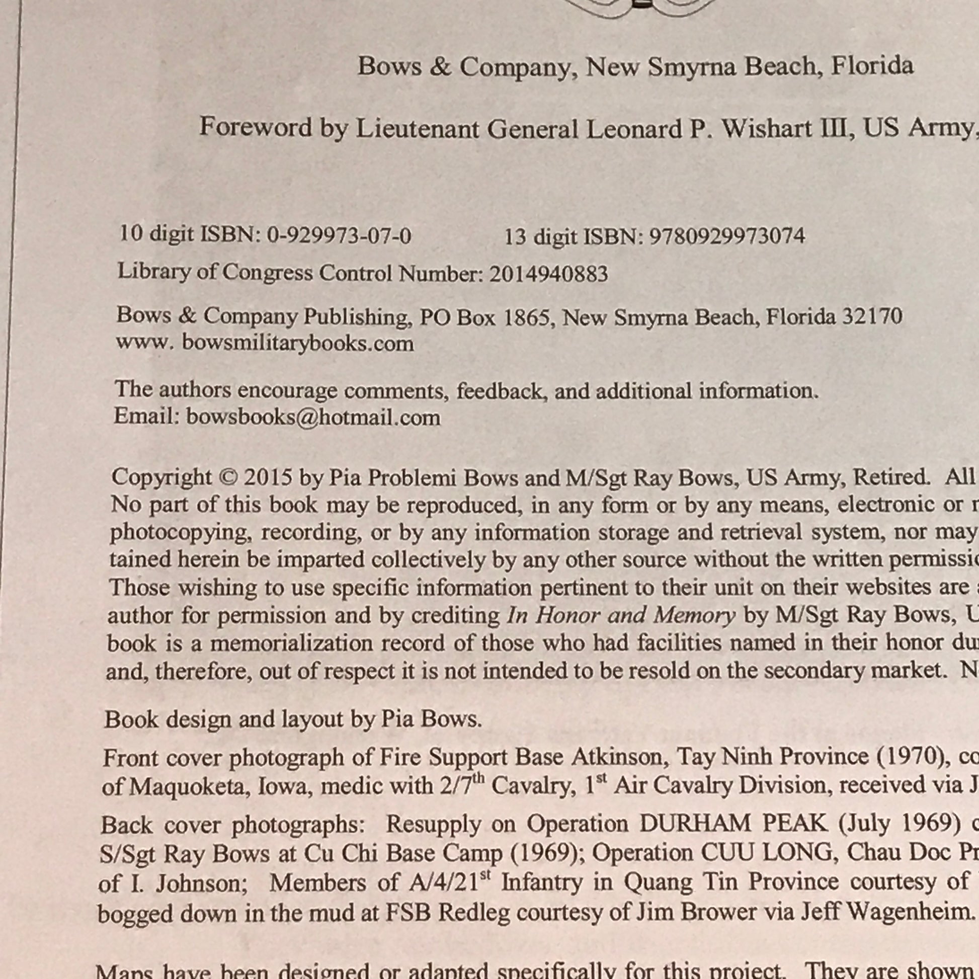 In Honor and Memory - Master Sergeant Ray A. Bows and Pia Bows - 2015