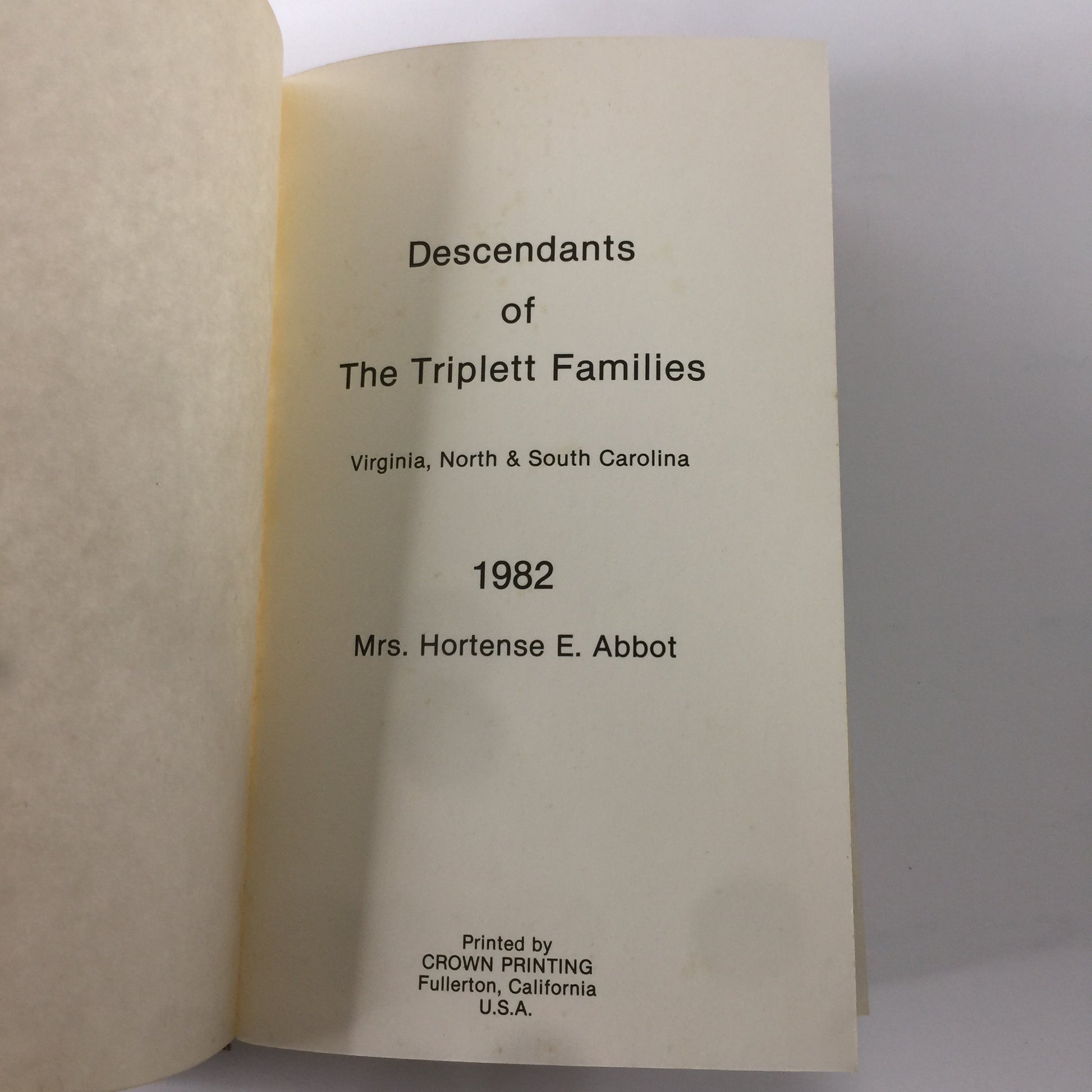 Tripping Down The Triplett Path - Hortense E. Abbot - 1982