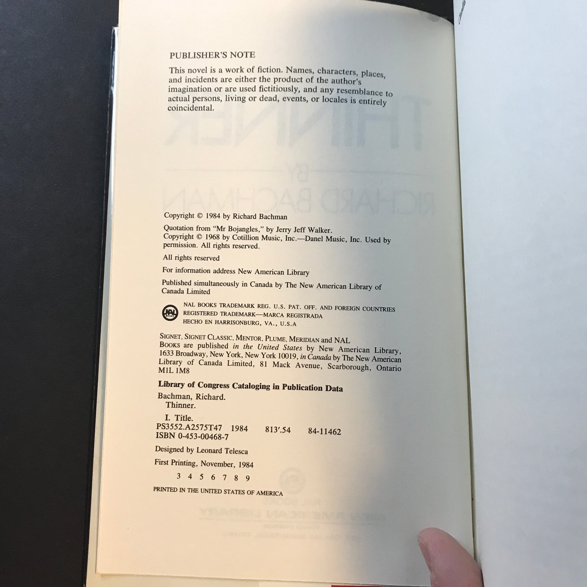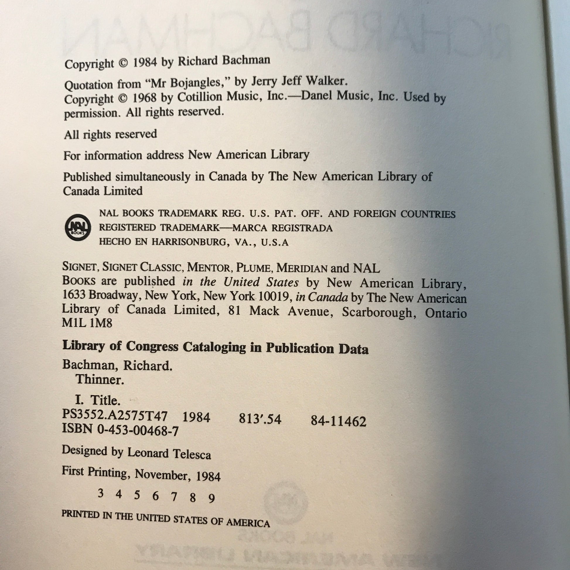 Thinner - Stephen King - 3rd Printing - 1984