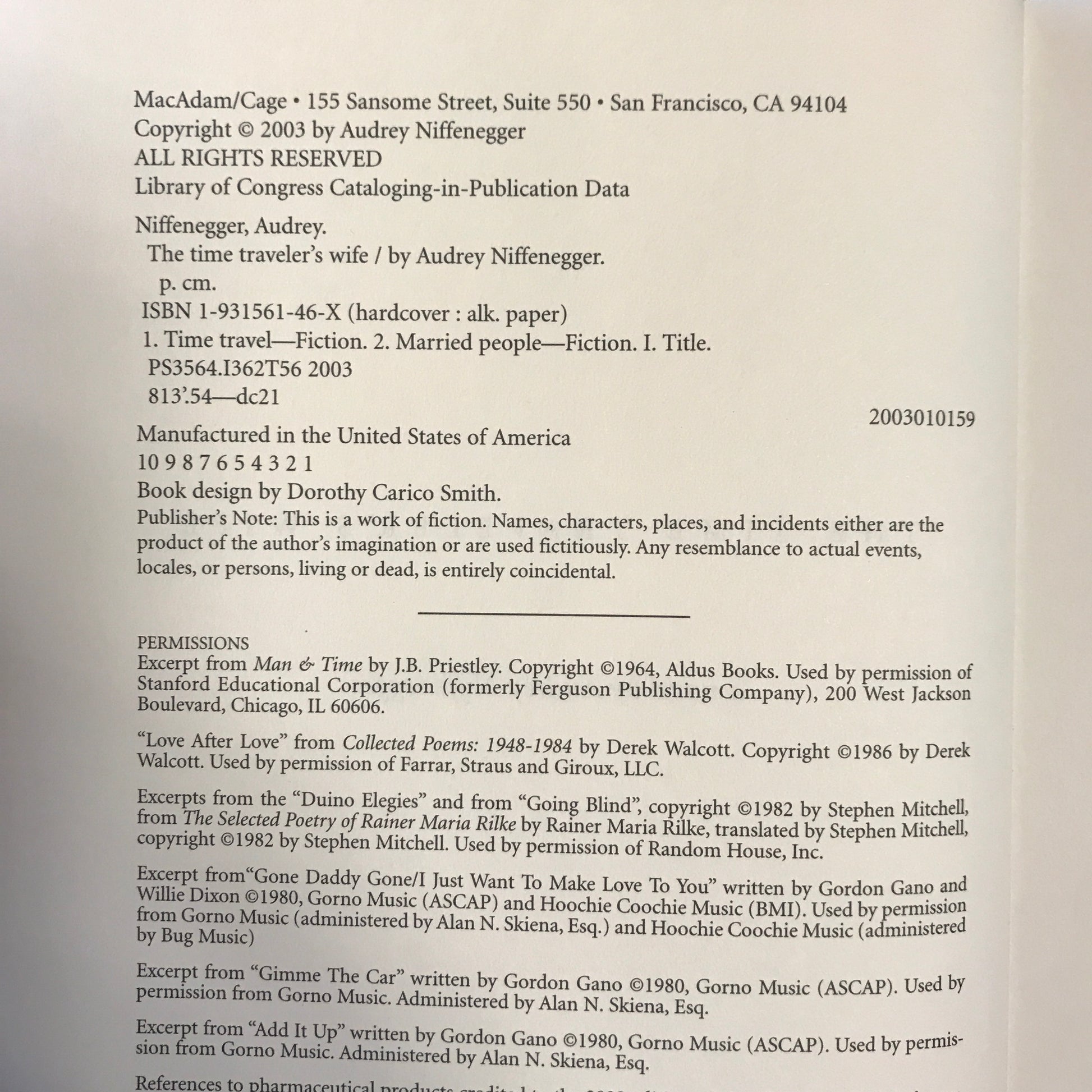 The Time Traveler's Wife - Audrey Niffenegger - 1st Edition - 2003