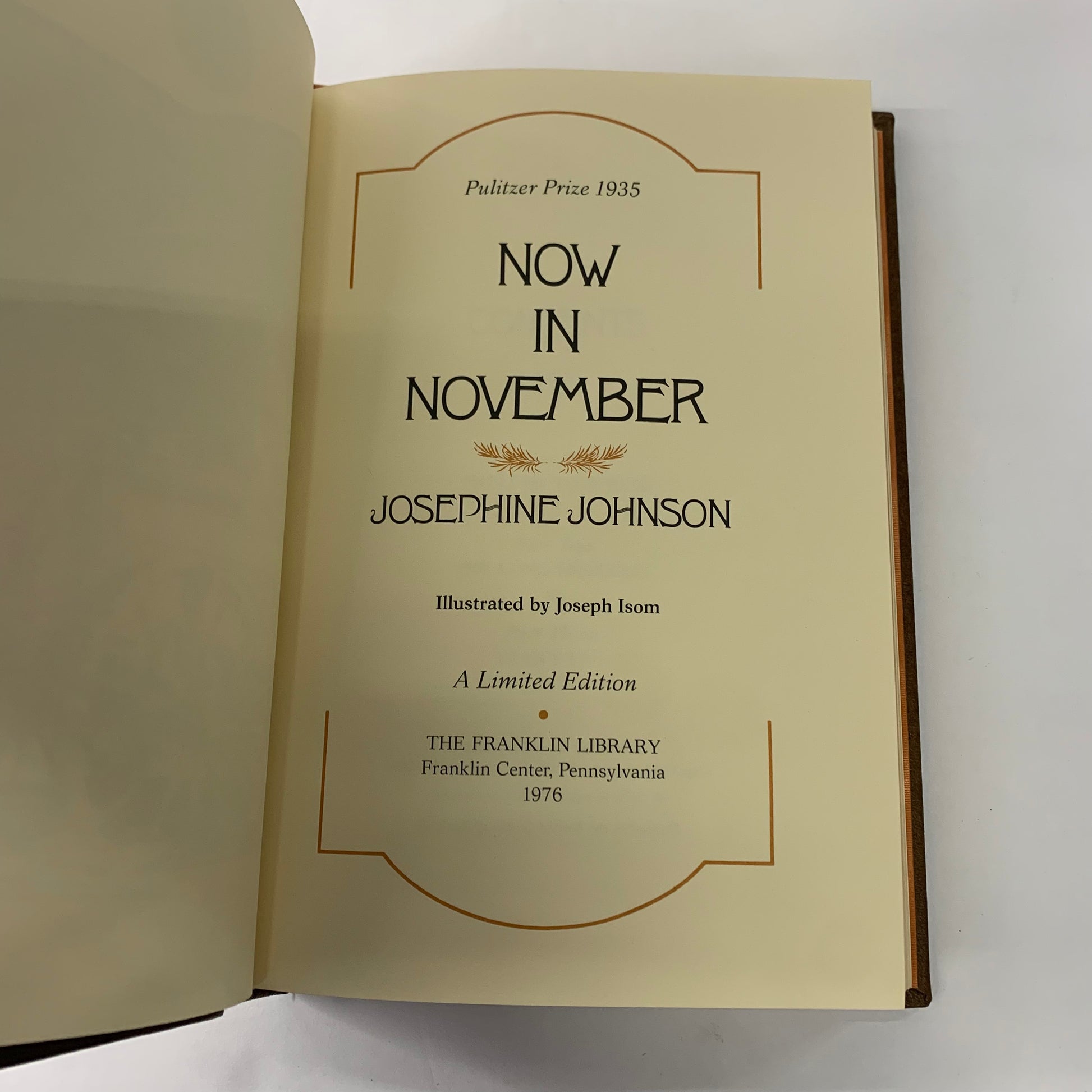 Now In November - Josephine Johnson - Franklin Library - 1976
