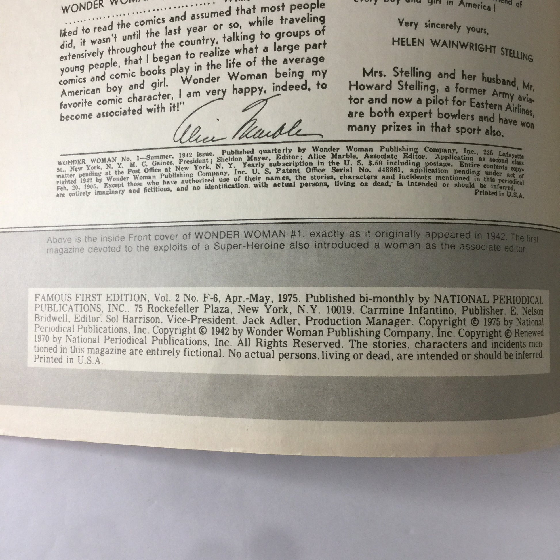Wonder Woman - Alice Marble - Famous 1st Edition - 1975