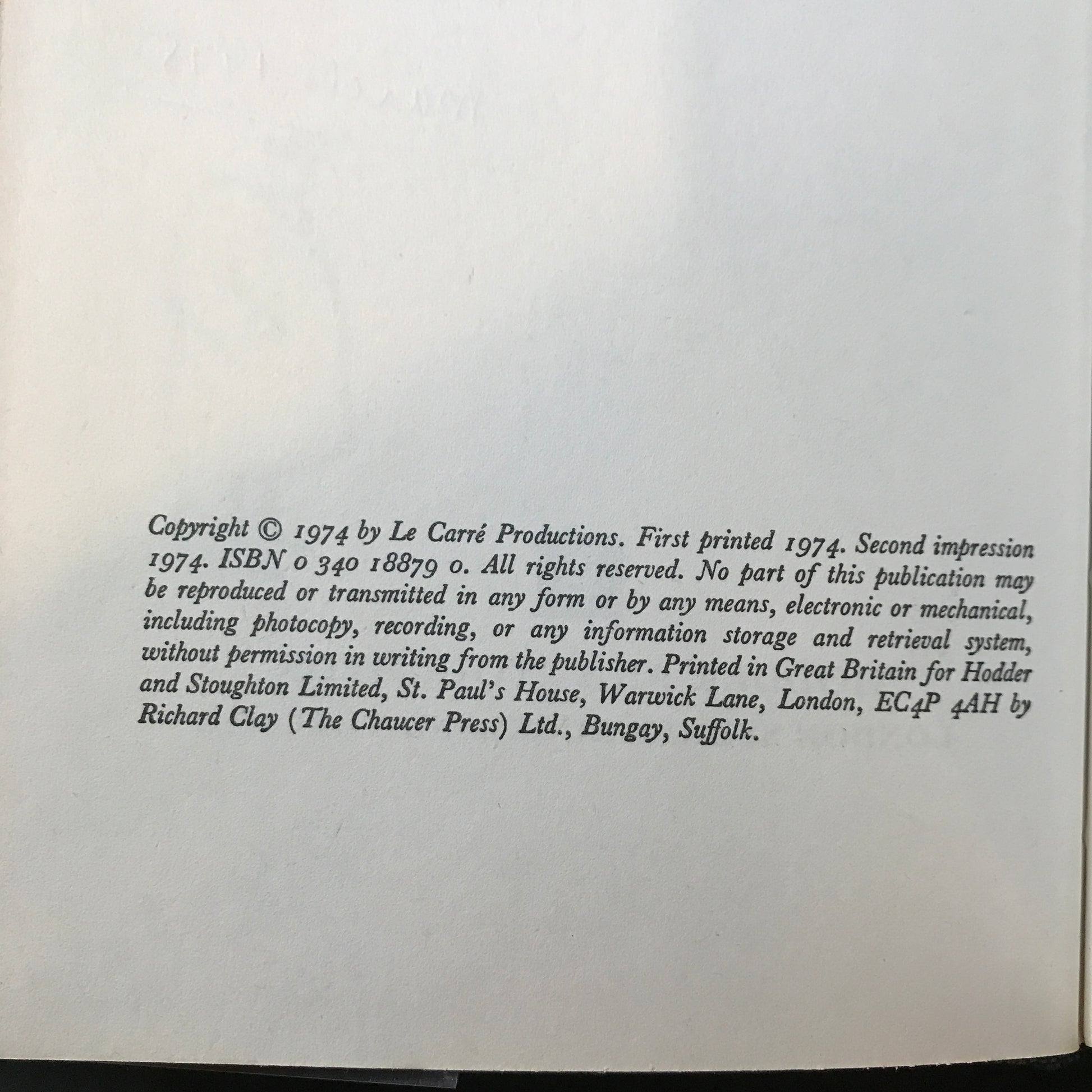 Tinker Tailor Soldier Spy - Le Carré - 2nd Print - U.K. Edition - 1974