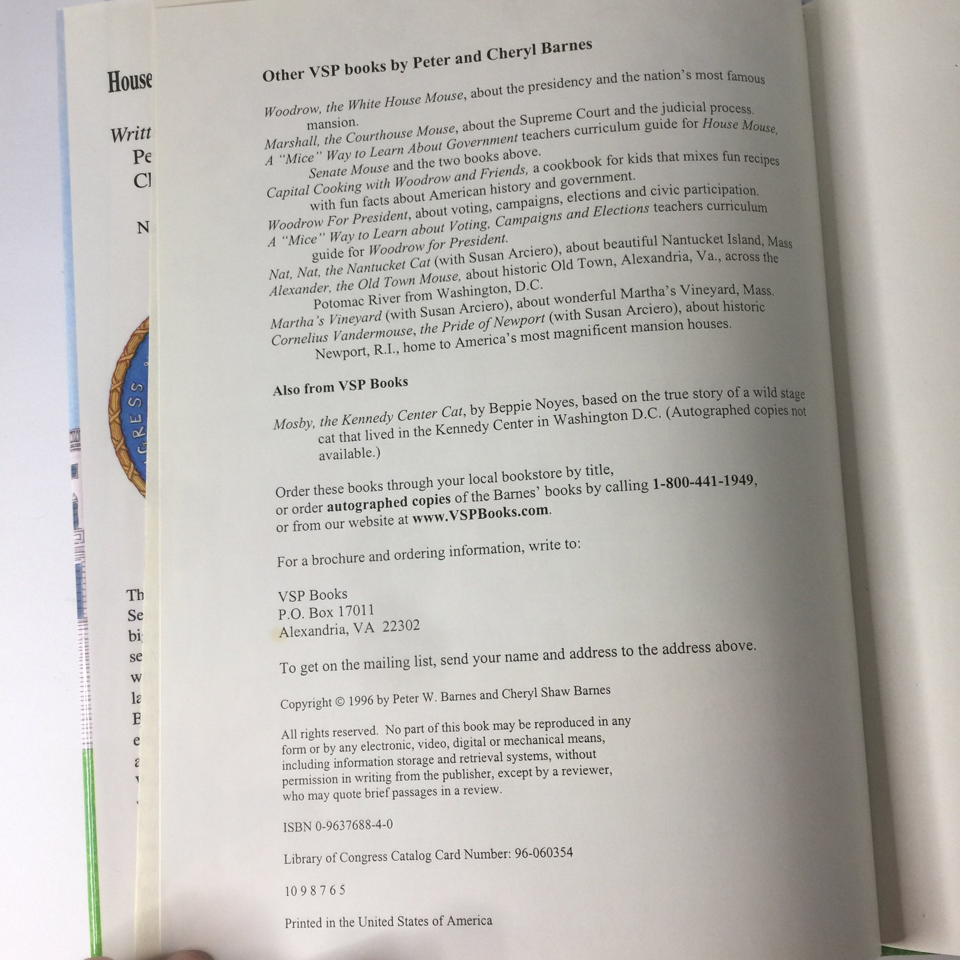 House Mouse Senate Mouse - Peter W. Barnes and Cheryl Shaw Barnes - Signed - 1996