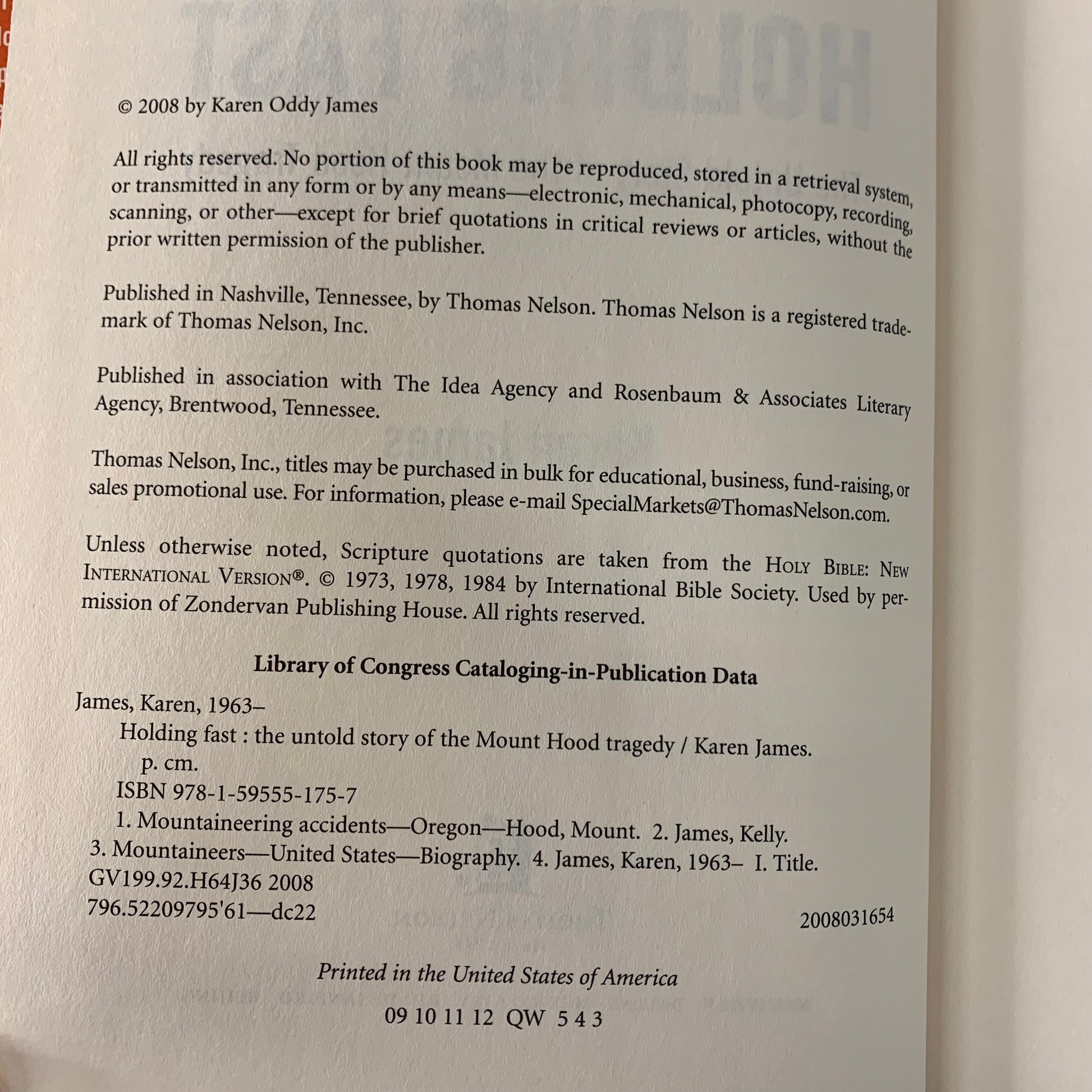 Holding Fast: The Untold Story of the Mount Hood Tragedy - Karen James - Signed - 2008