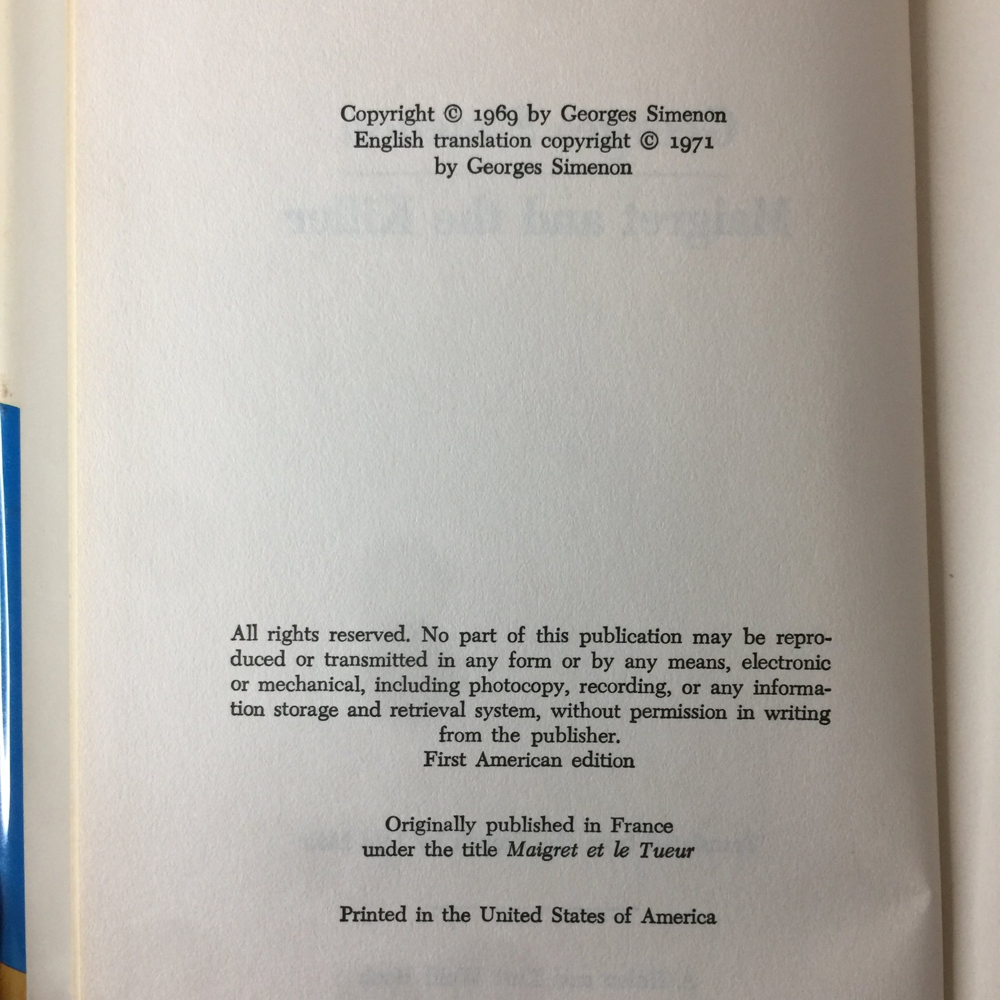 Maigret and The Killer - Georges Simenon - Book Club Edition - Stated 1st - 1969