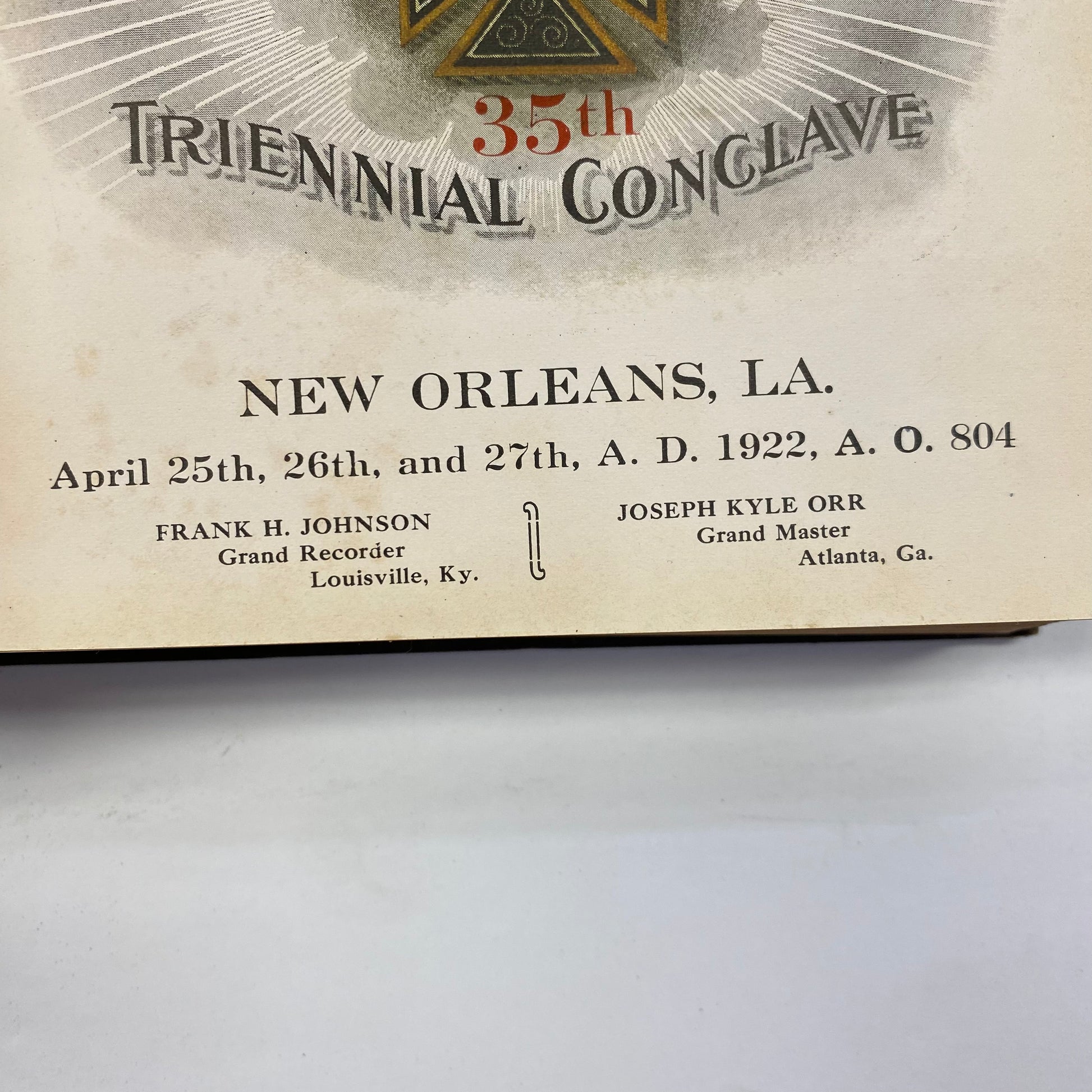 Proceedings of the Grand Encampment of Knights Templar - Frank H. Johnson - New Orleans, LA. - 1922