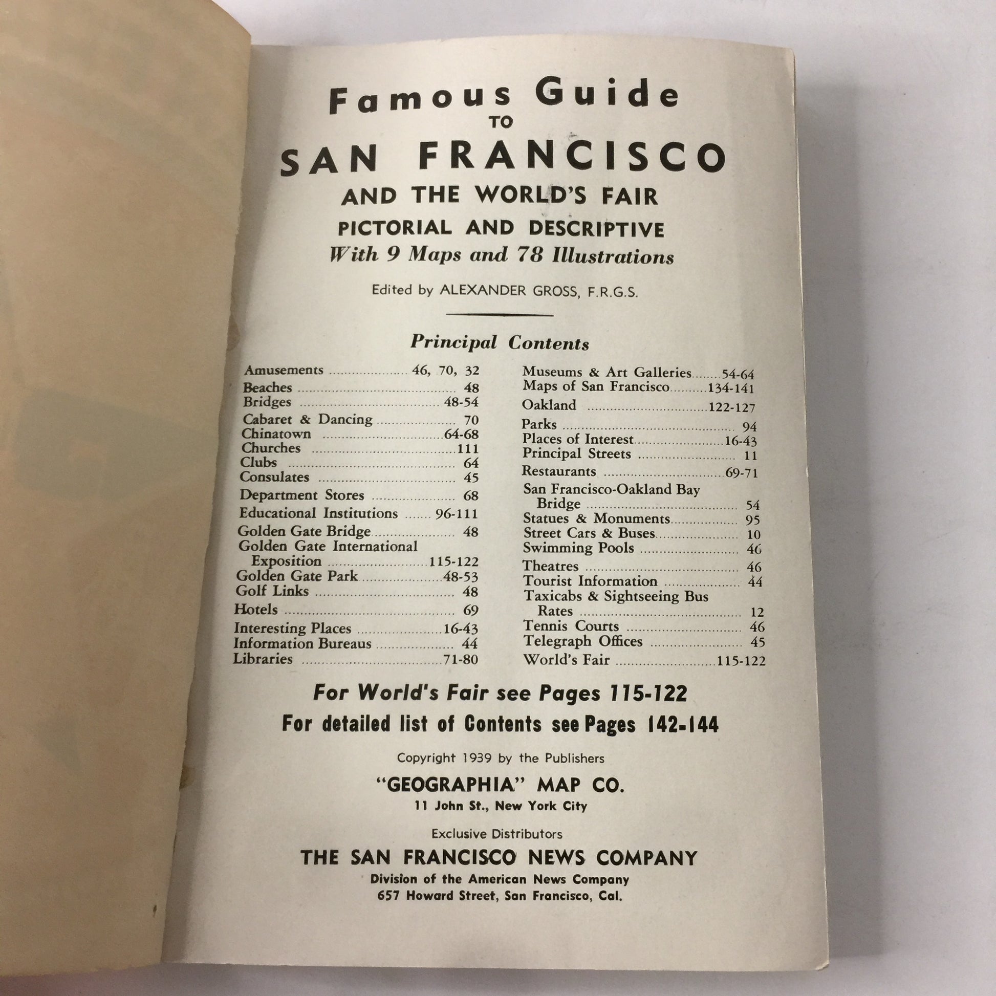 Famous Guide To San Francisco - Edited by Alexander Gross - World’s Fair - 1939