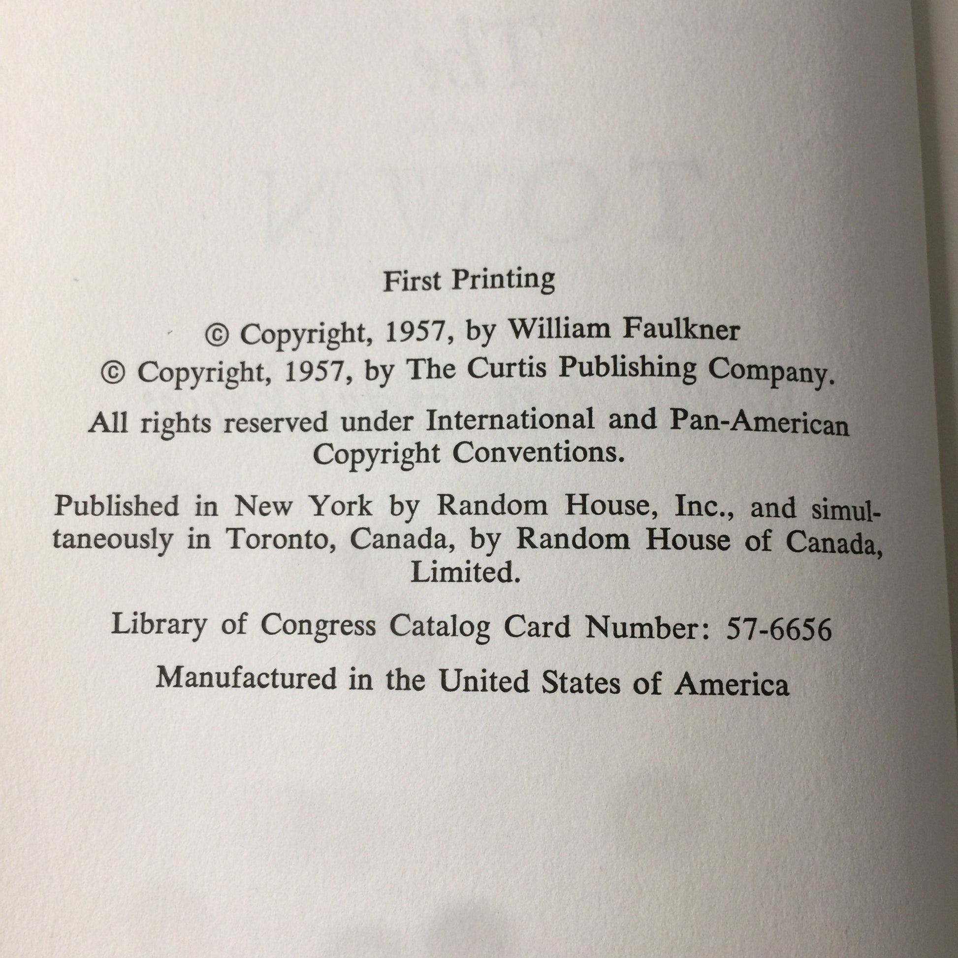 The Town - William Faulkner - 1st State - Printing error: pg. 327 line 8 and 10 - 1957