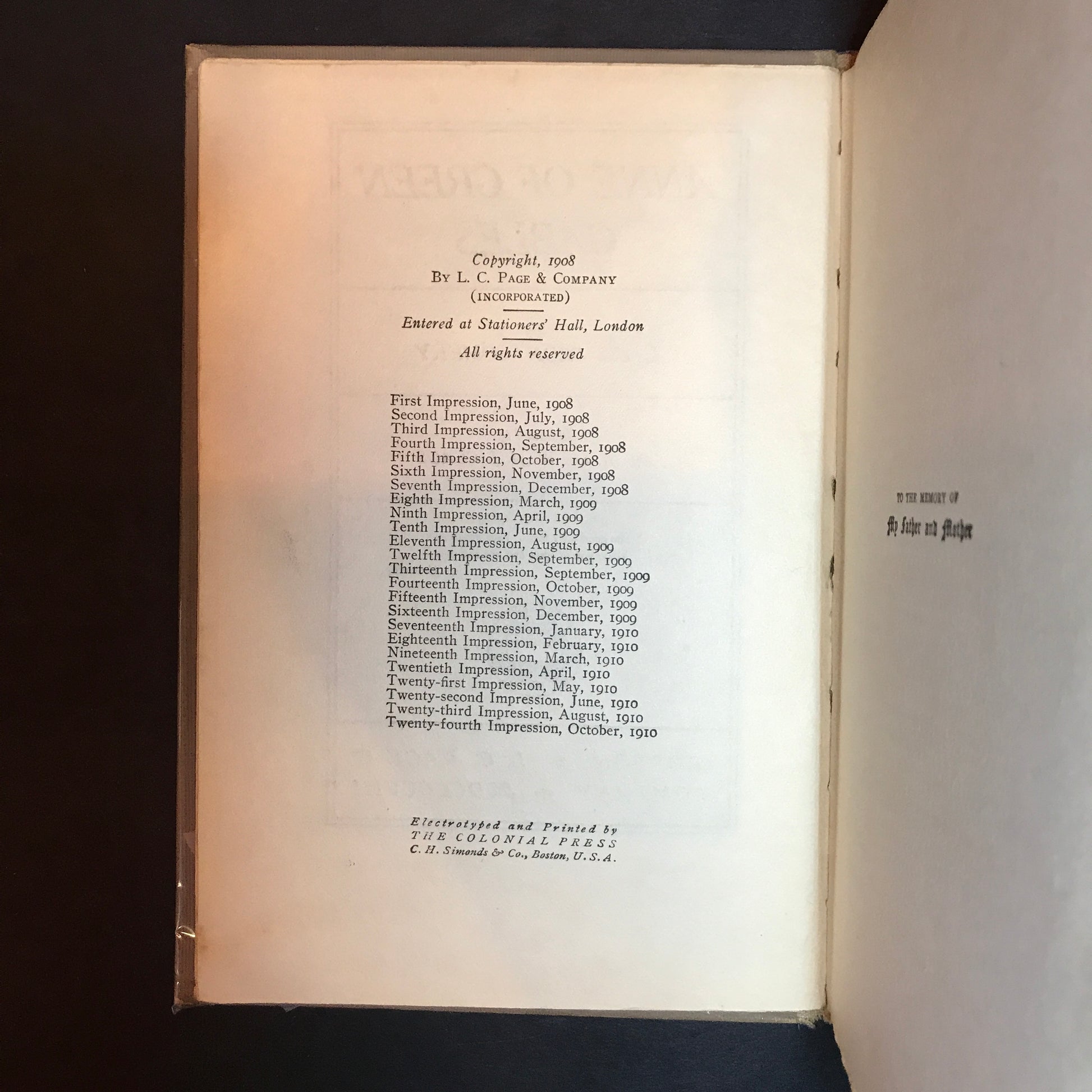Anne of Green Gables - L. M. Montgomery - 24th Print - 1910