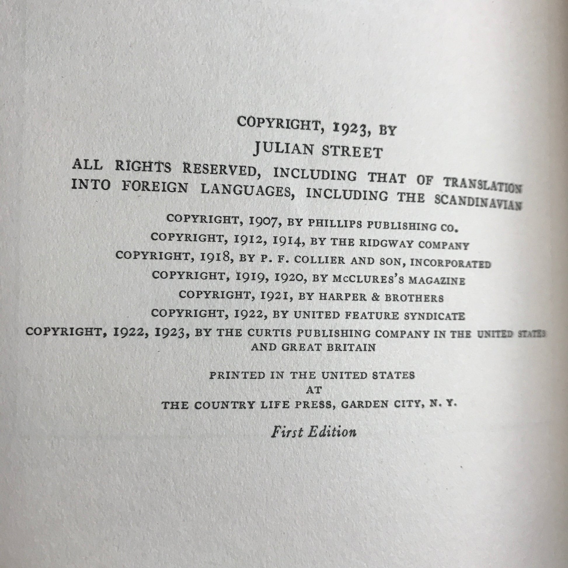 Cross-Sections - Julian Street - 1st Edition - 1923