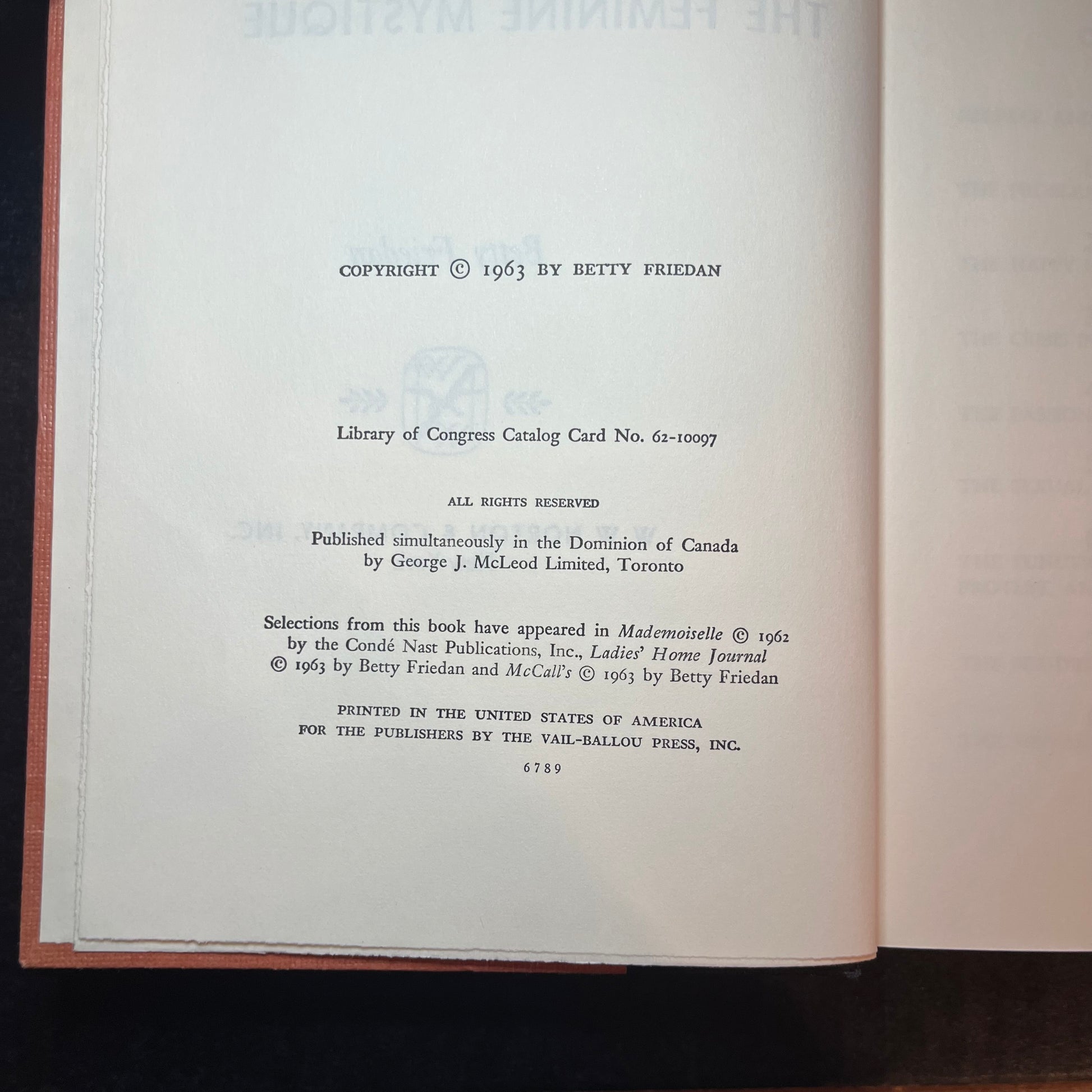 The Feminine Mystique - Betty Friedan - 6th Print - 1963