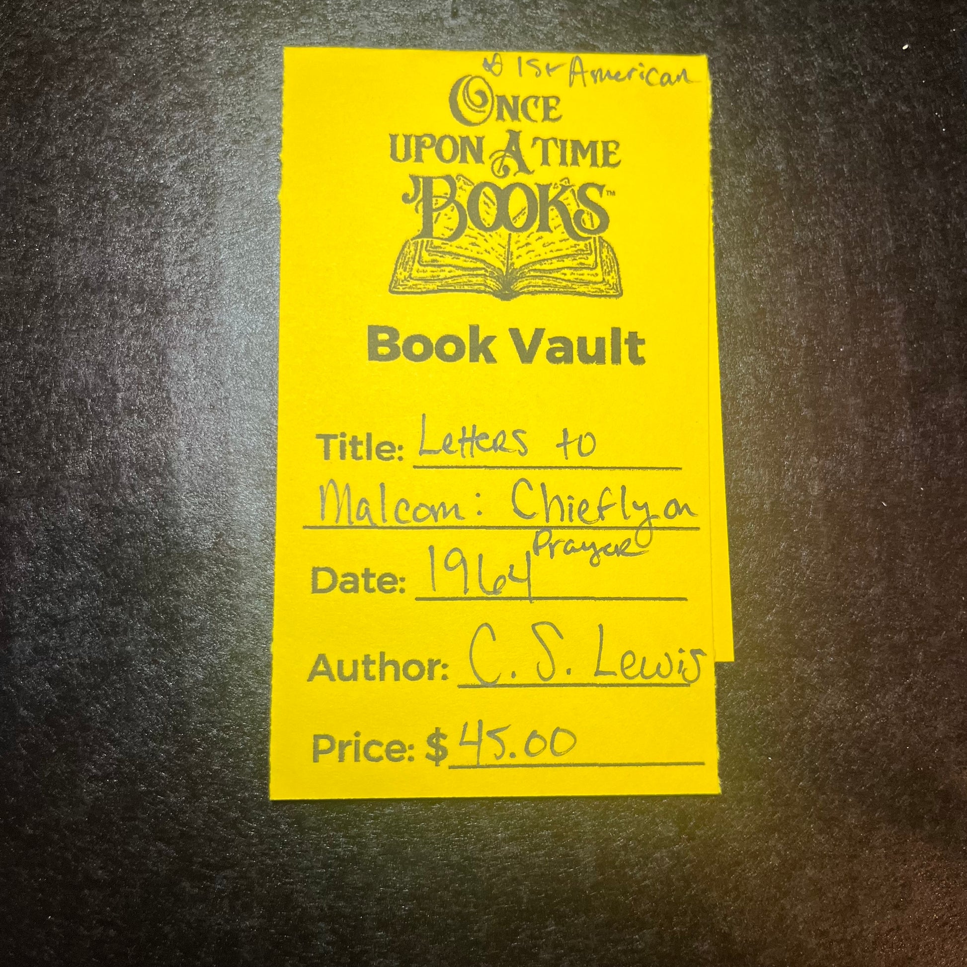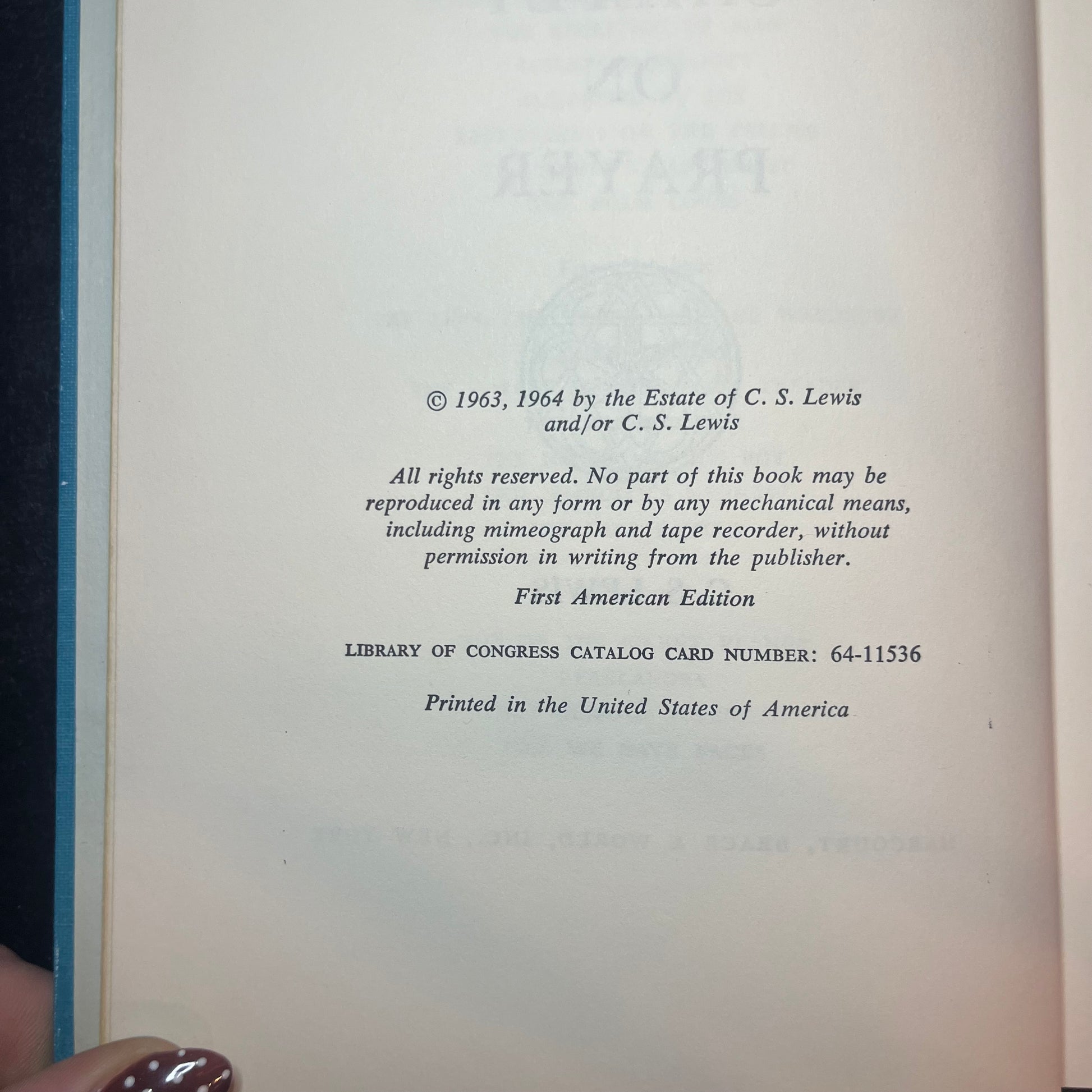 Letters to Malcom: Chiefly on Prayer - C.S. Lewis - 1st American - 1964