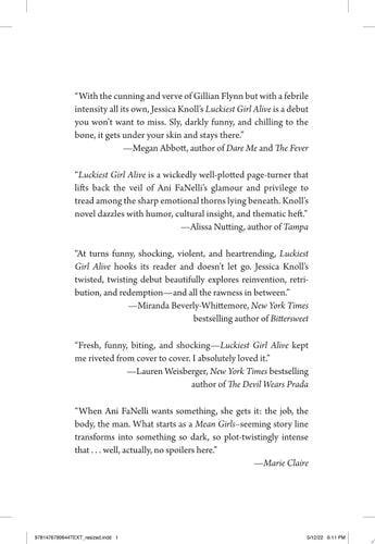 With a singular voice and twists you won’t see coming, Luckiest Girl Alive explores the unbearable pressure that so many women feel to “have it all” and introduces a heroine whose sharp edges and cutthroat ambition have been protecting a scandalous truth, and a heart that's bigger than it first appears.