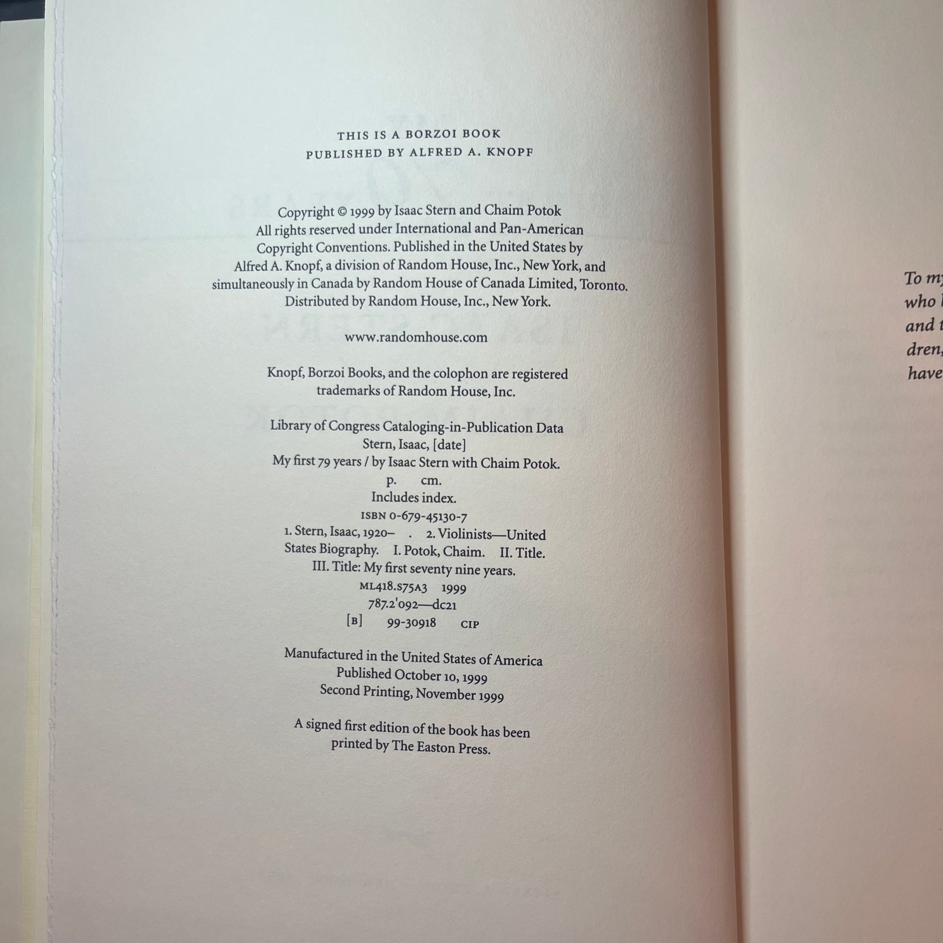 My First 79 Years - Isaac Stern with Chaim Potok - Signed Copy - 1999