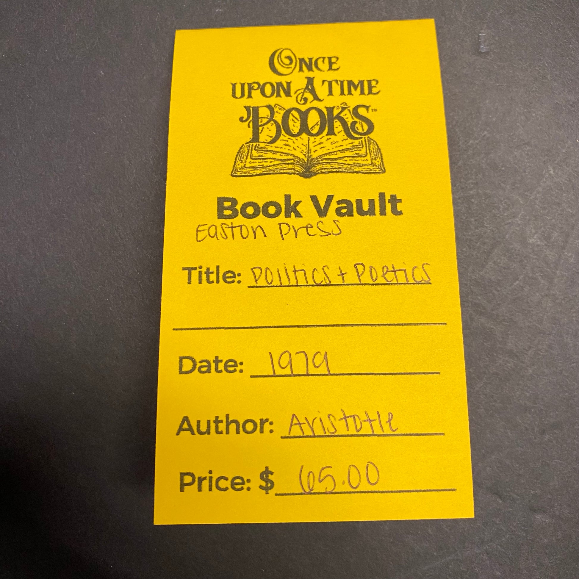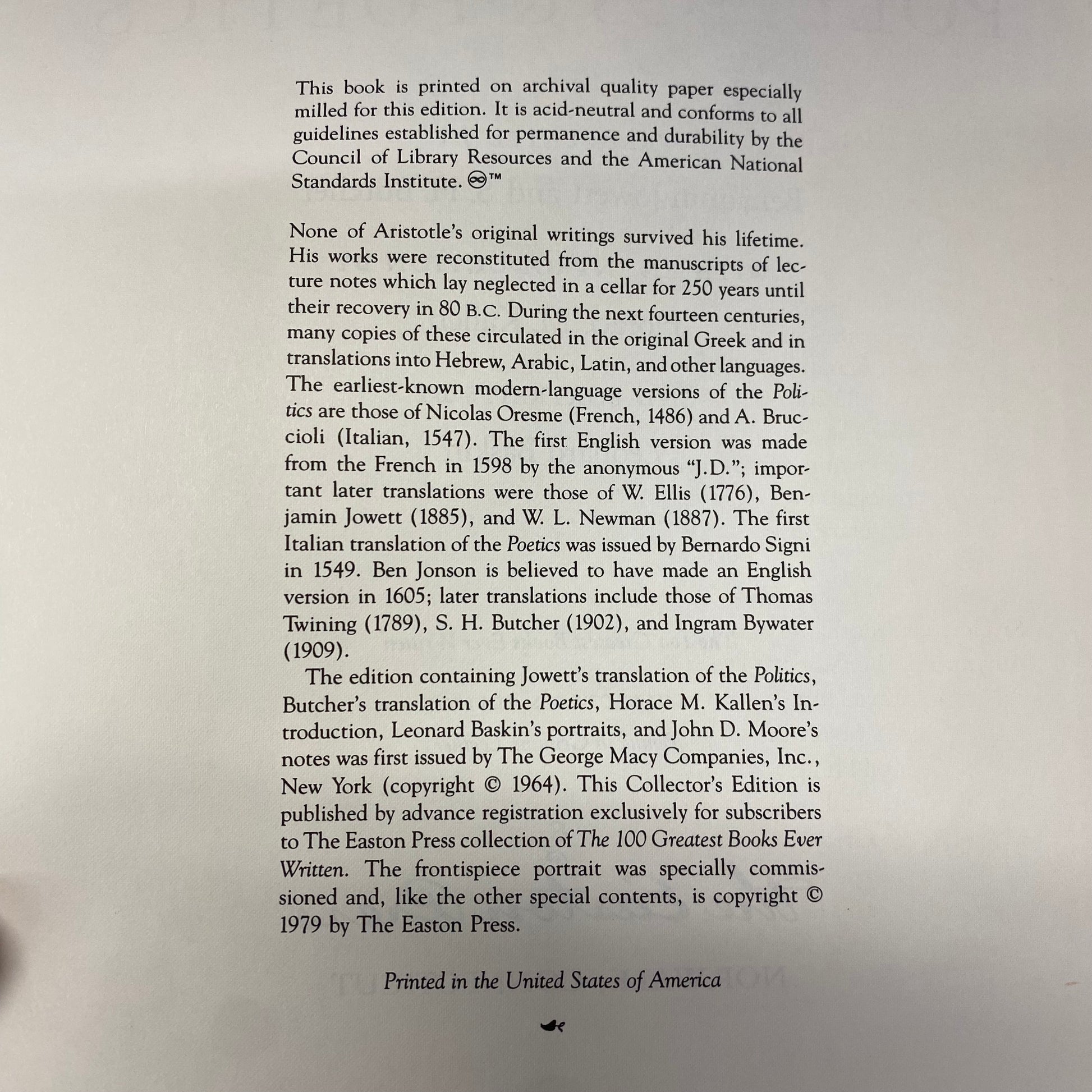 Politics and Poetics - Aristotle - Easton Press - 1979