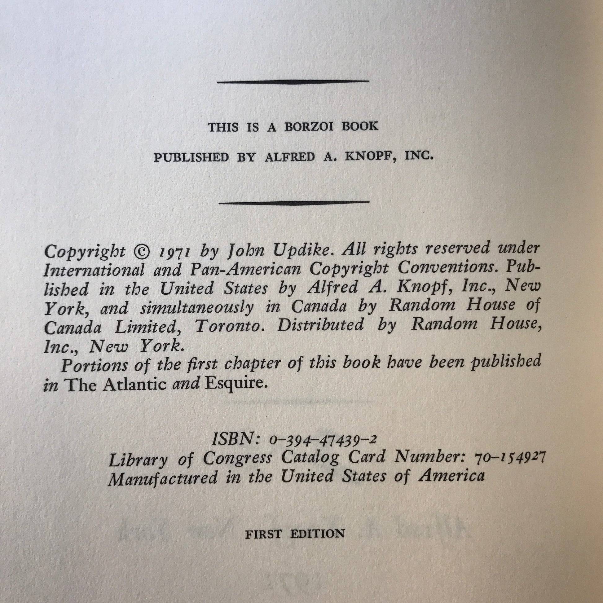 Rabbit Redux - John Updike - 1st Edition - 1971