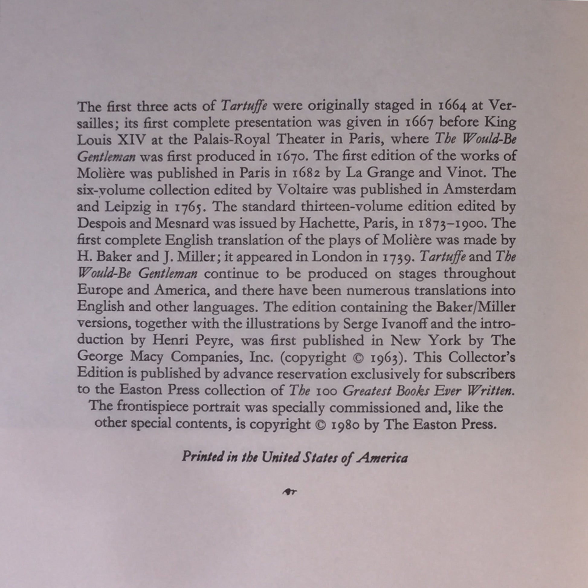 Tartuffe and the Would-Be Gentleman - Moliere - Easton Press - 1980