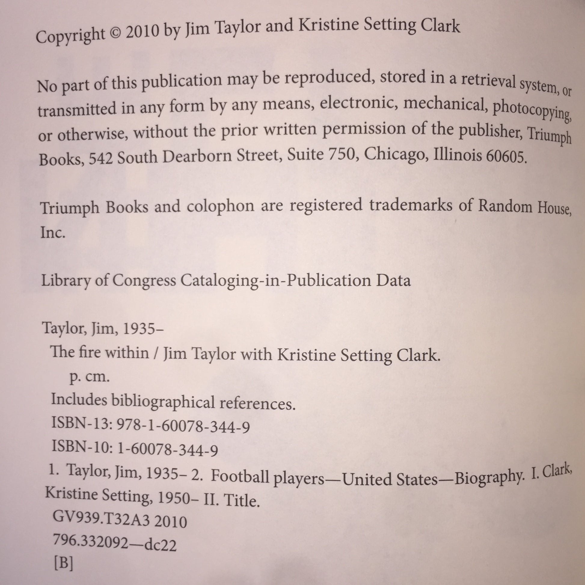 The Fire Within - Jim Taylor - Inscribed - 2010