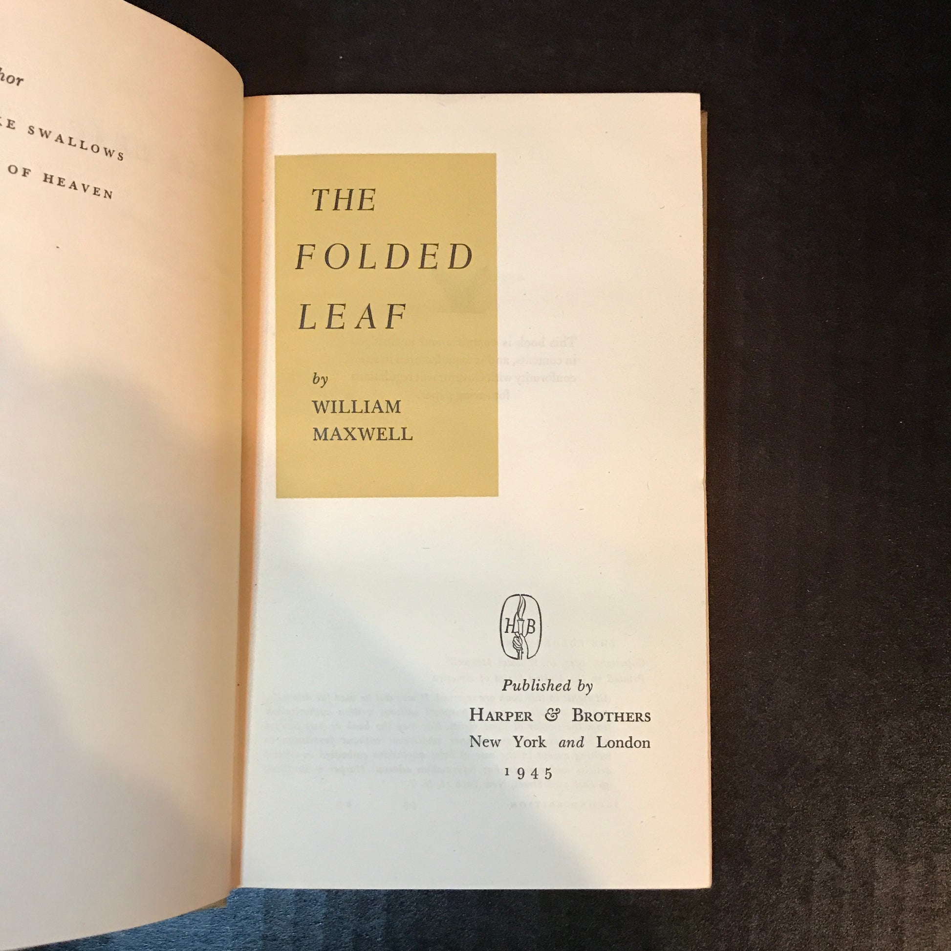 The Folded Leaf - William Maxwell - 2nd Edition - 1945
