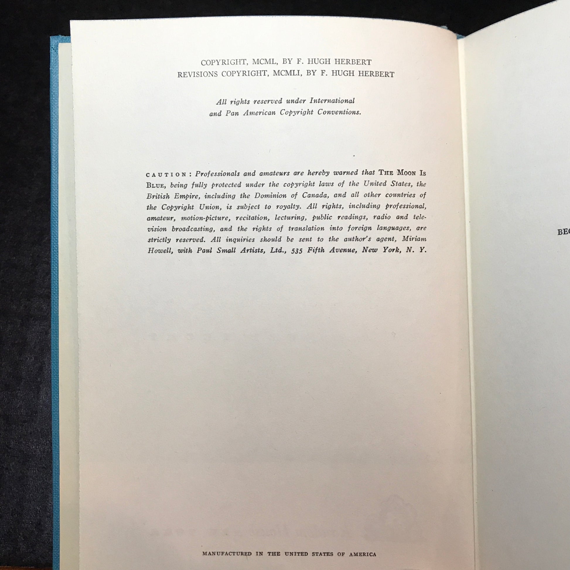 The Moon is Blue - F. Hugh Herbert - First Edition - 1951