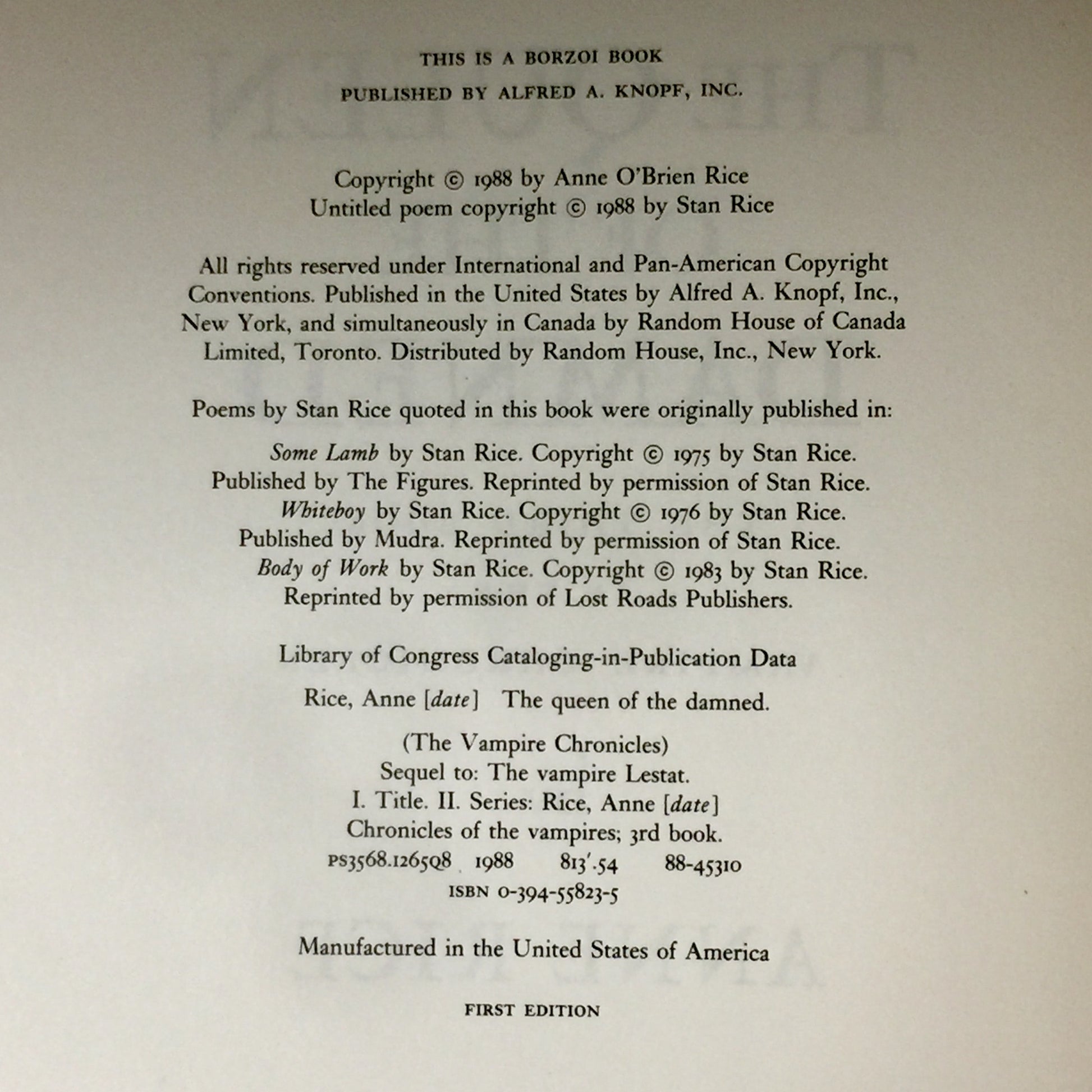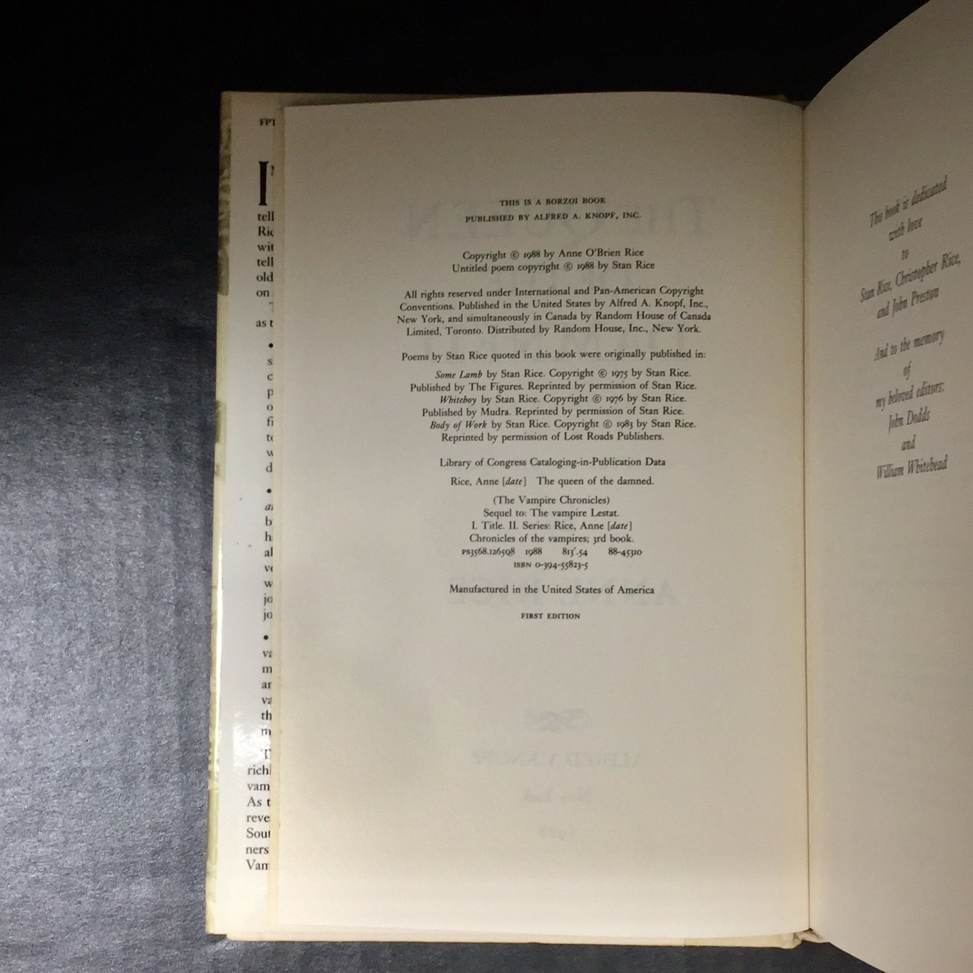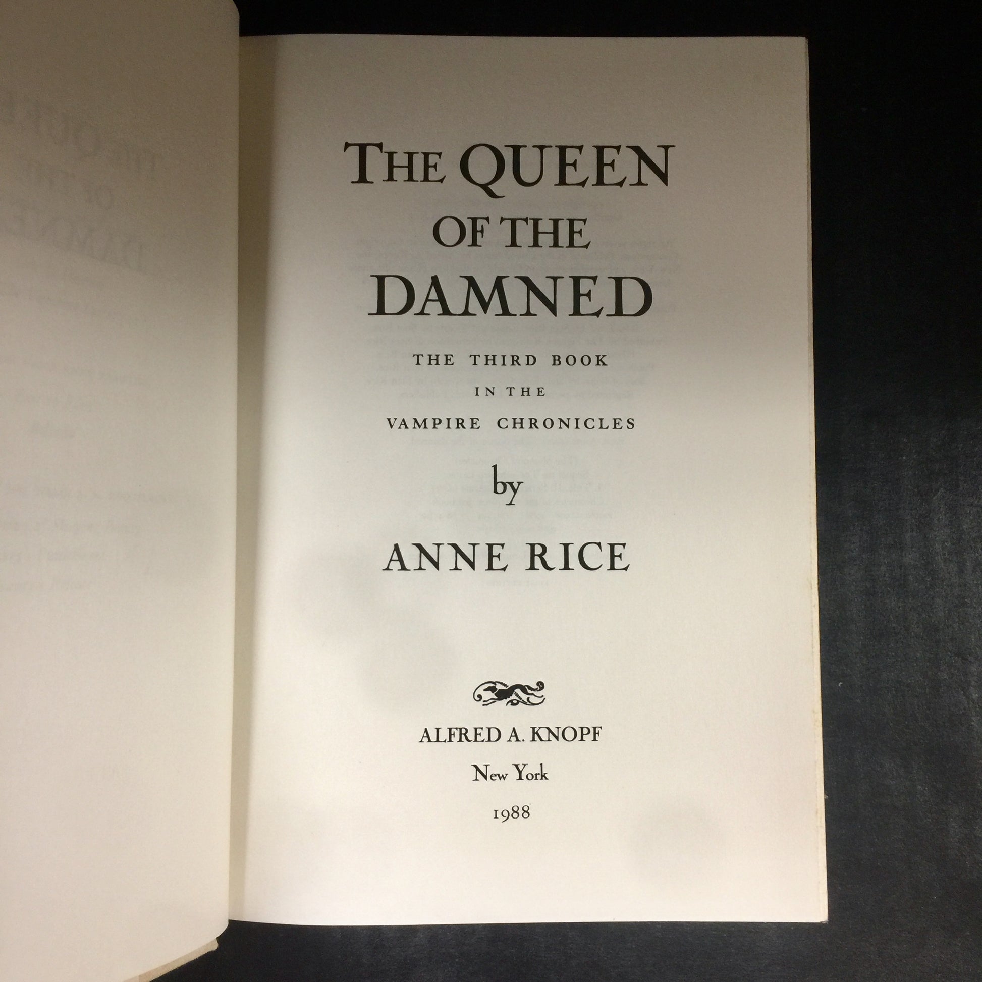 The Queen Of The Damned - Anne Rice - Signed - First Edition - 1988