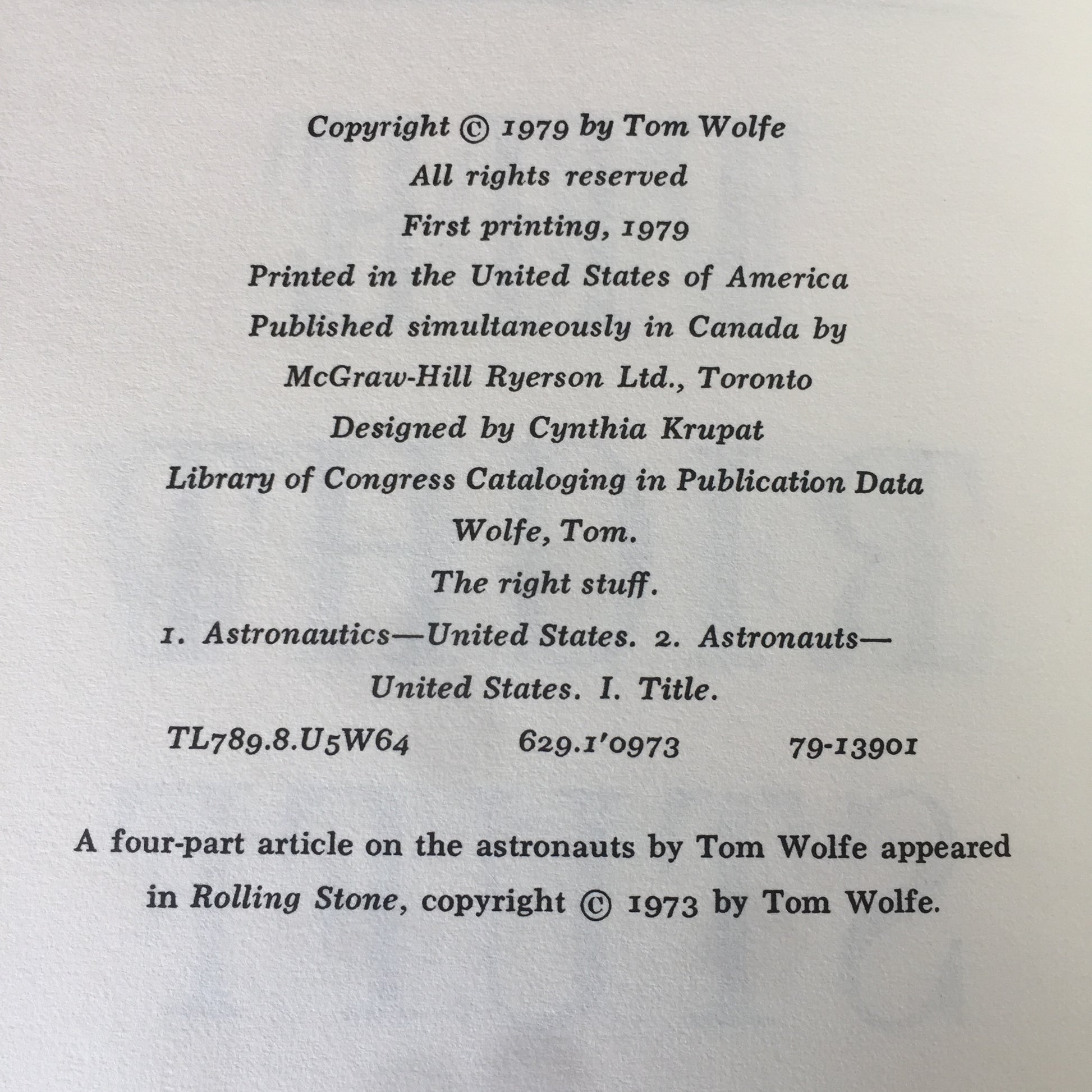 The Right Stuff - Tom Wolfe - 1st Edition - 1979