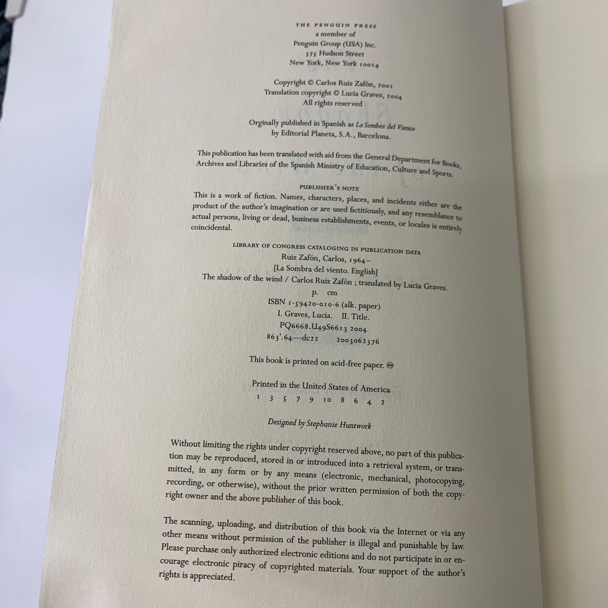 The Shadow of the Wind - Carlos Ruiz Zafón - 1st Edition - 2004