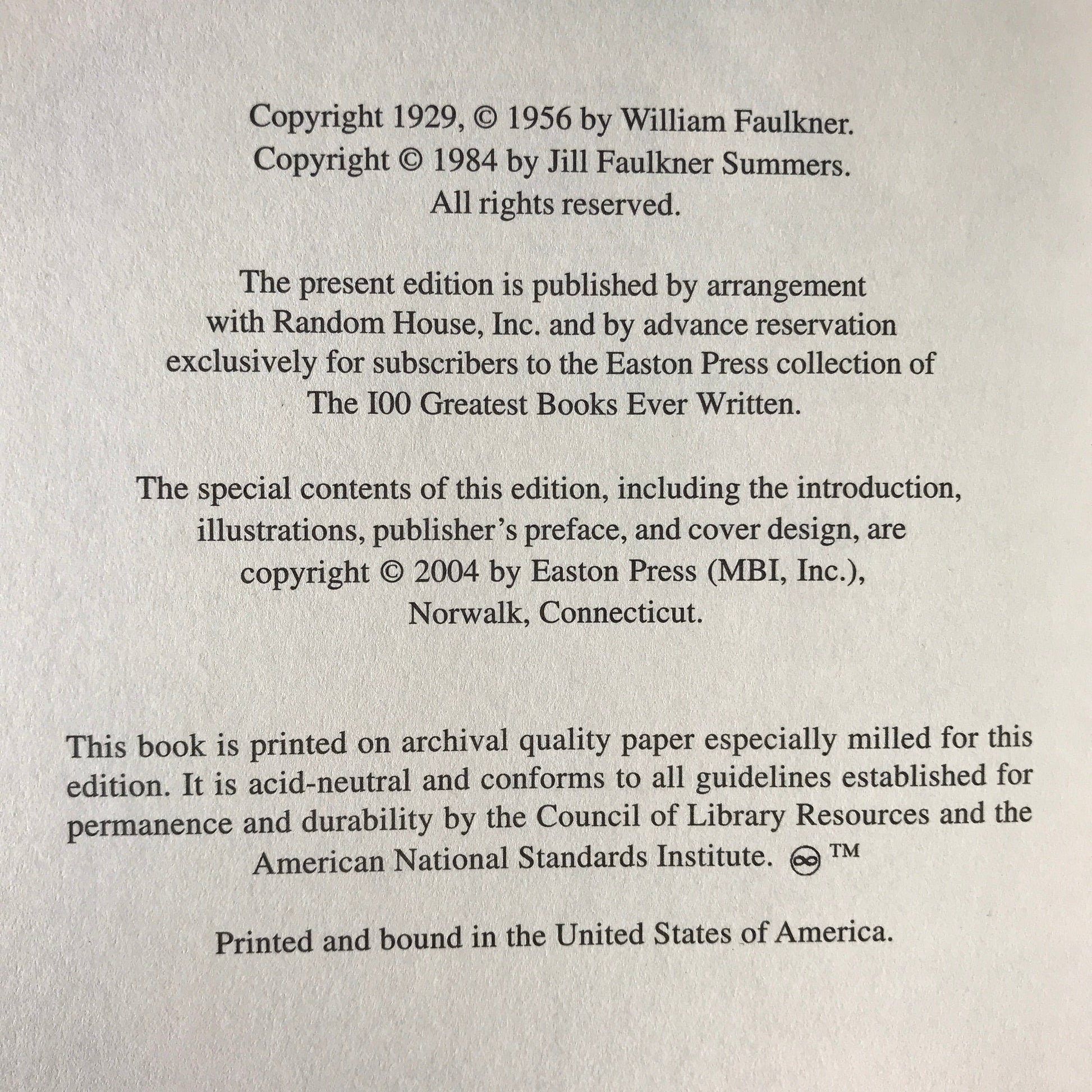 The Sound and the Fury - William Faulkner - Easton Press - 2004
