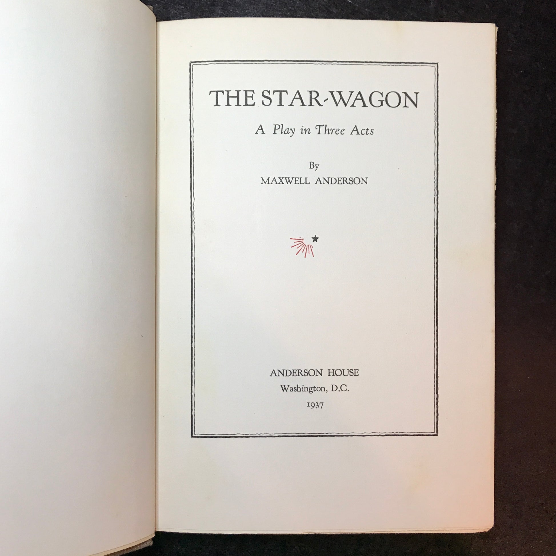 The Star-Wagon - Maxwell Anderson - First Edition - 1937