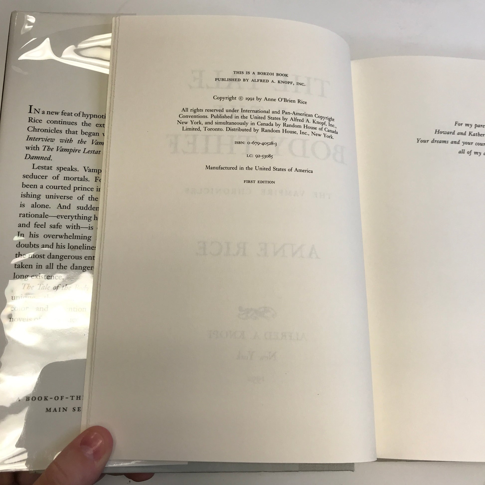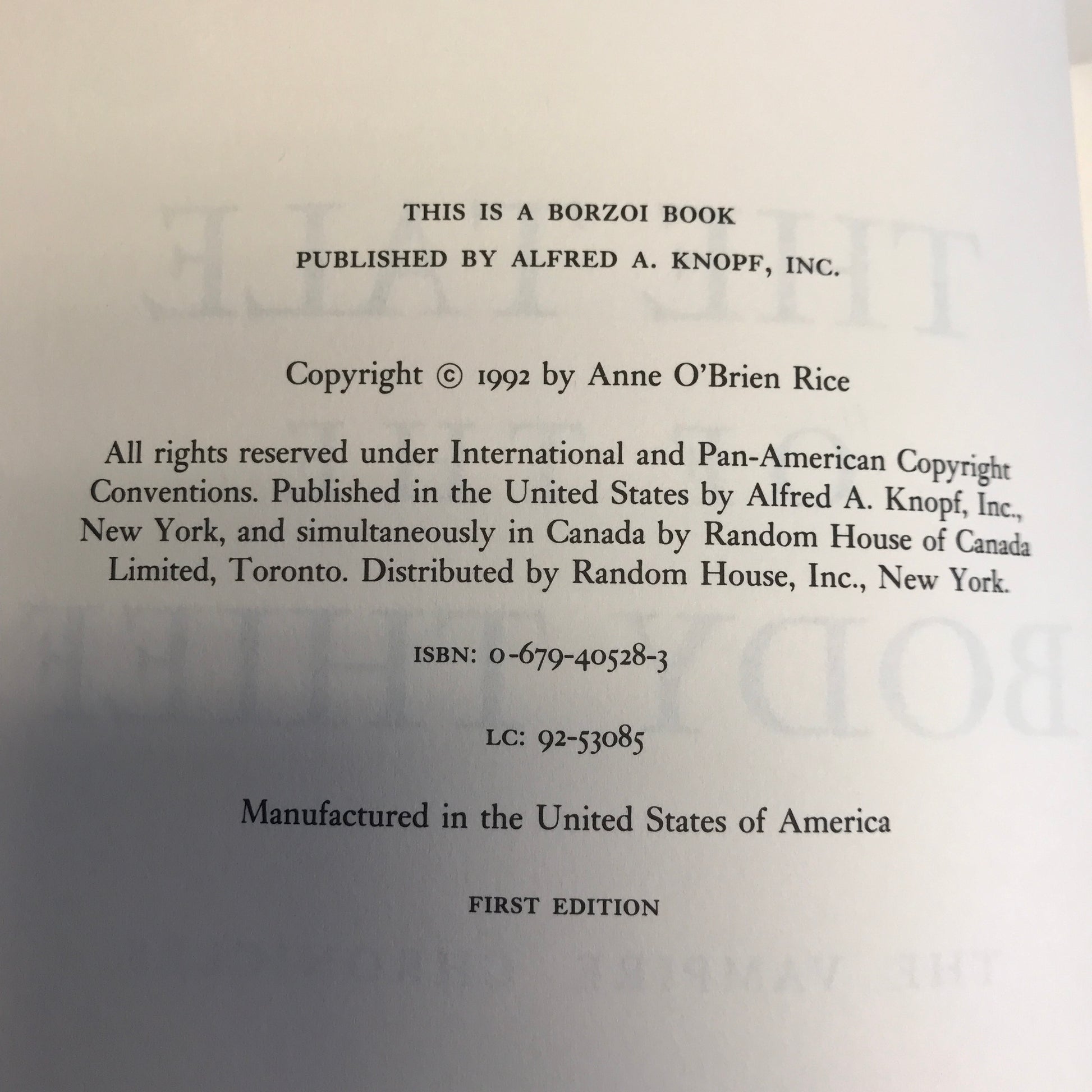 The Tale of the Body Thief - Anne Rice - Signed - 1992