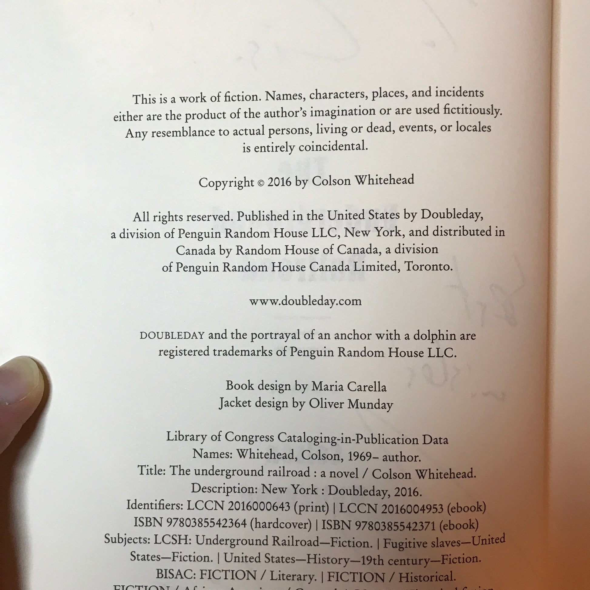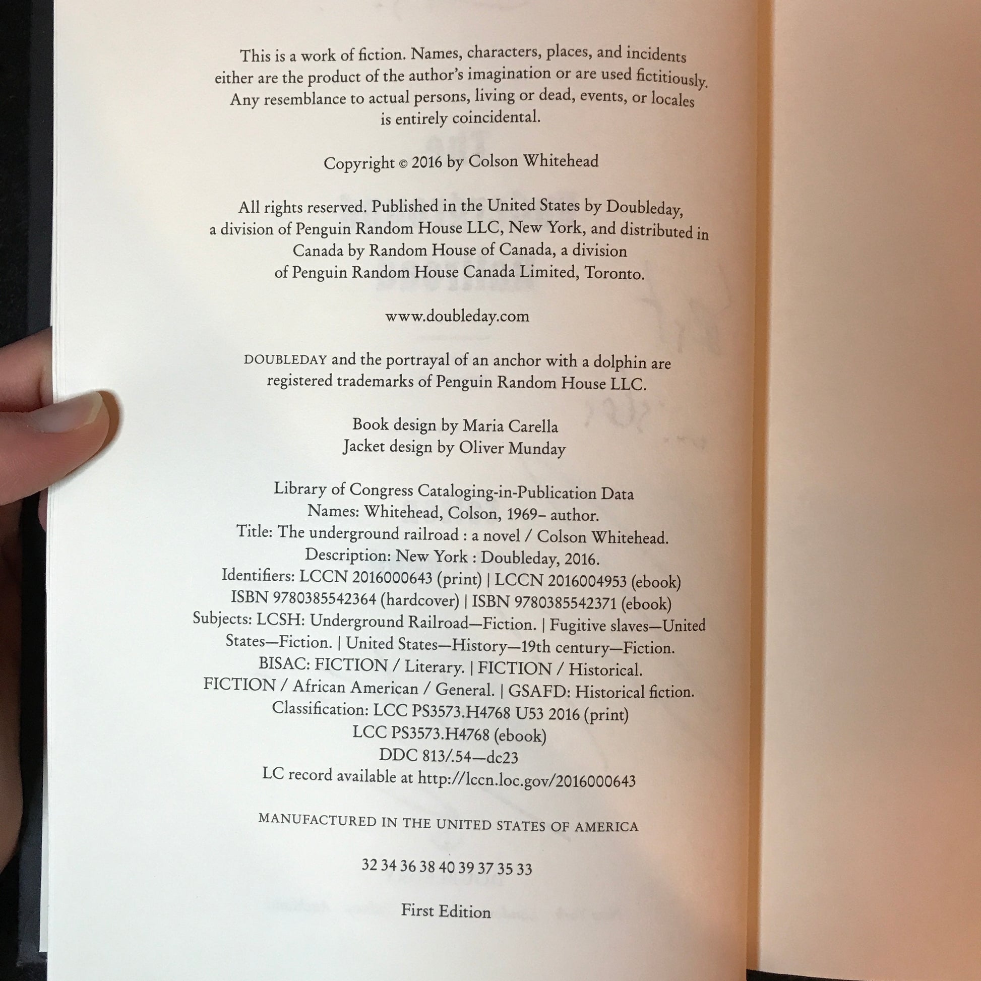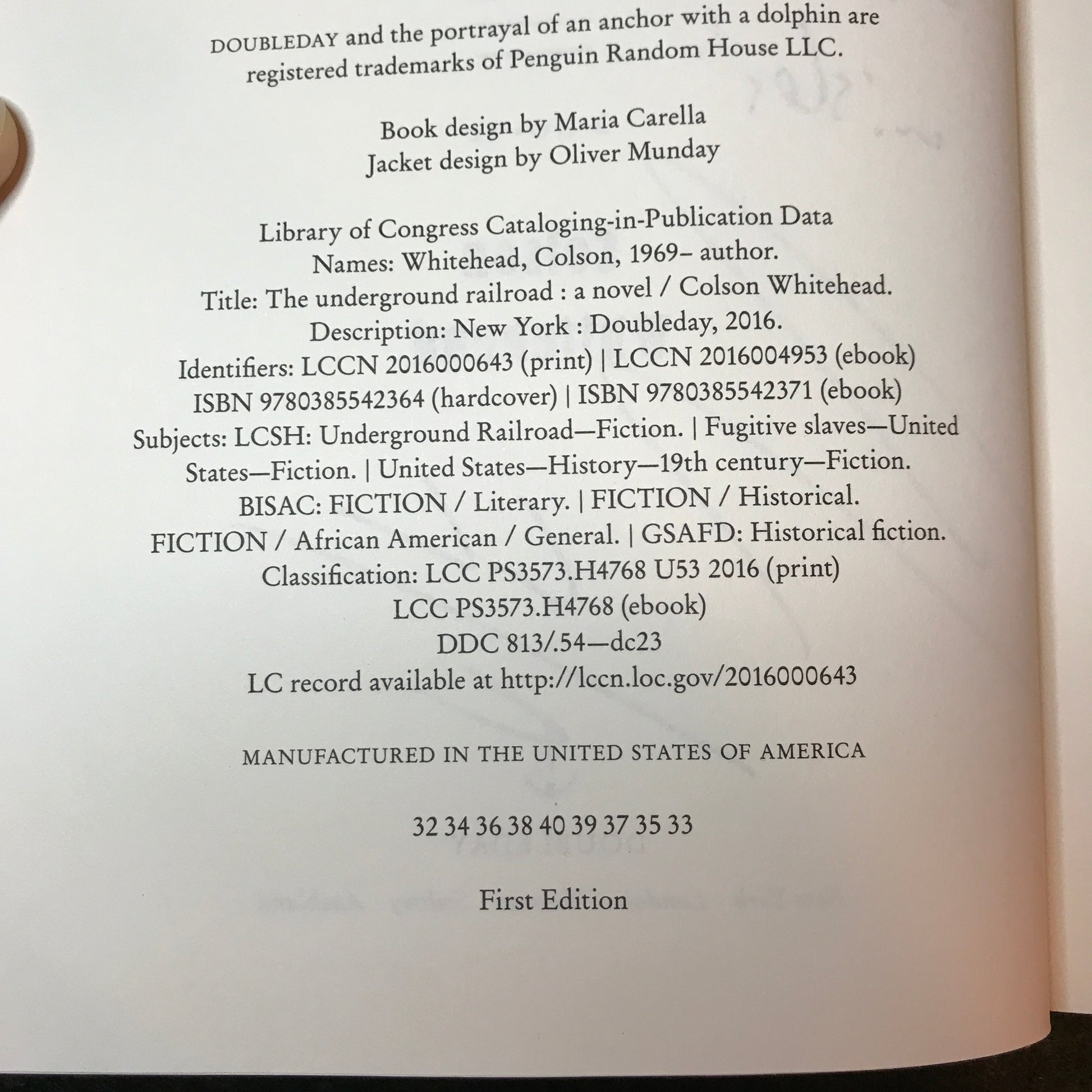 The Underground Railroad - Colson Whitehead - Signed - First Edition - 2016
