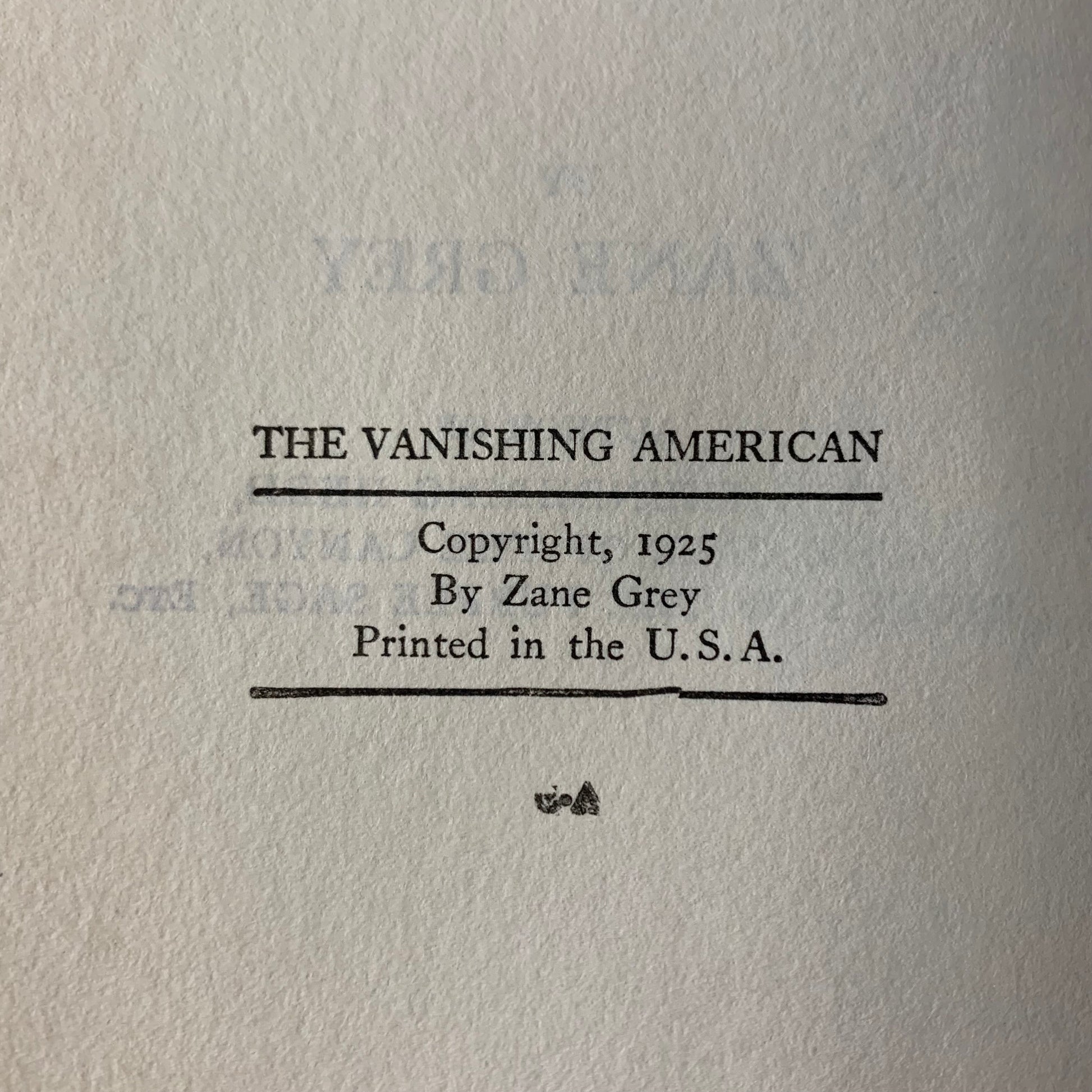 The Vanishing American - Zane Grey - Reprint - 1925