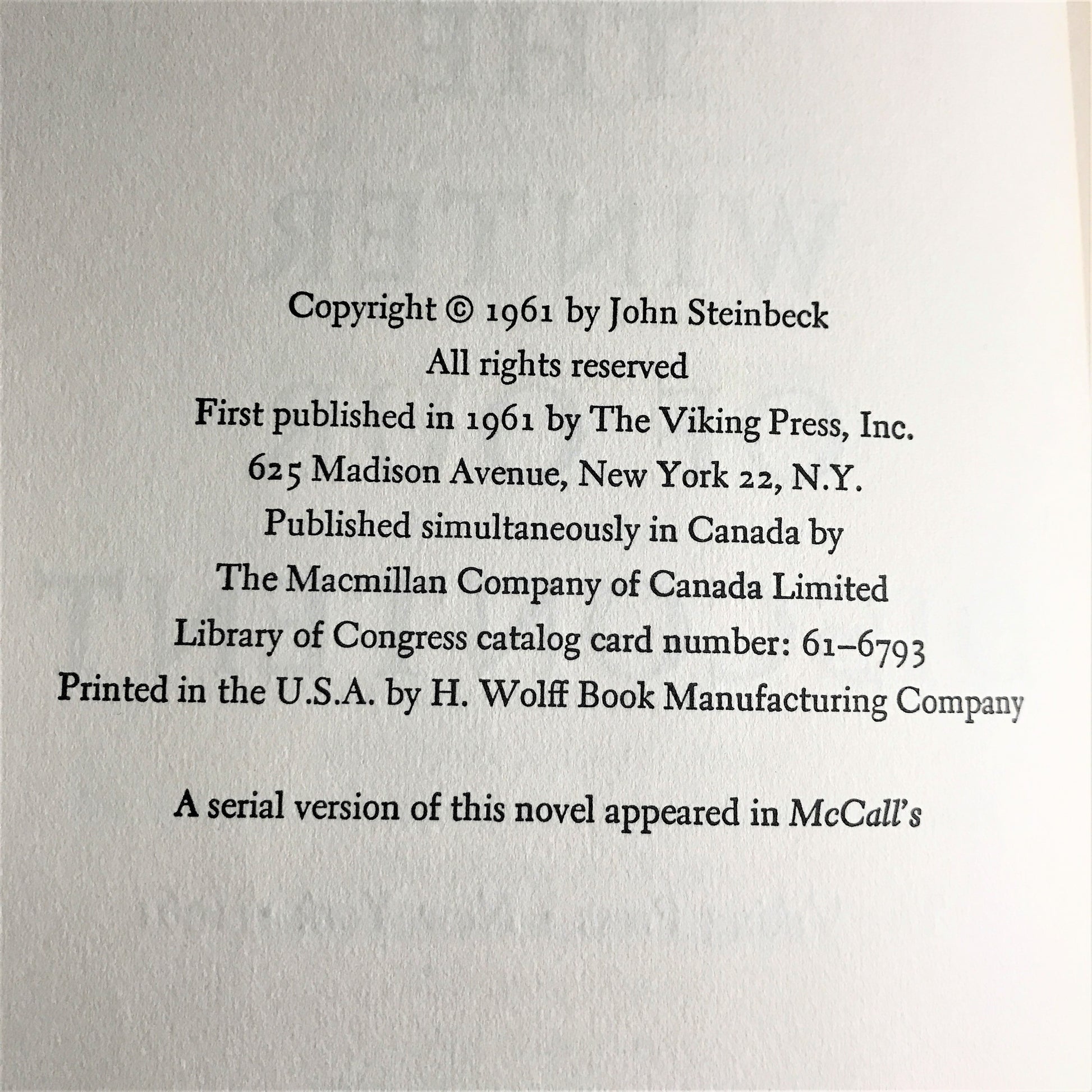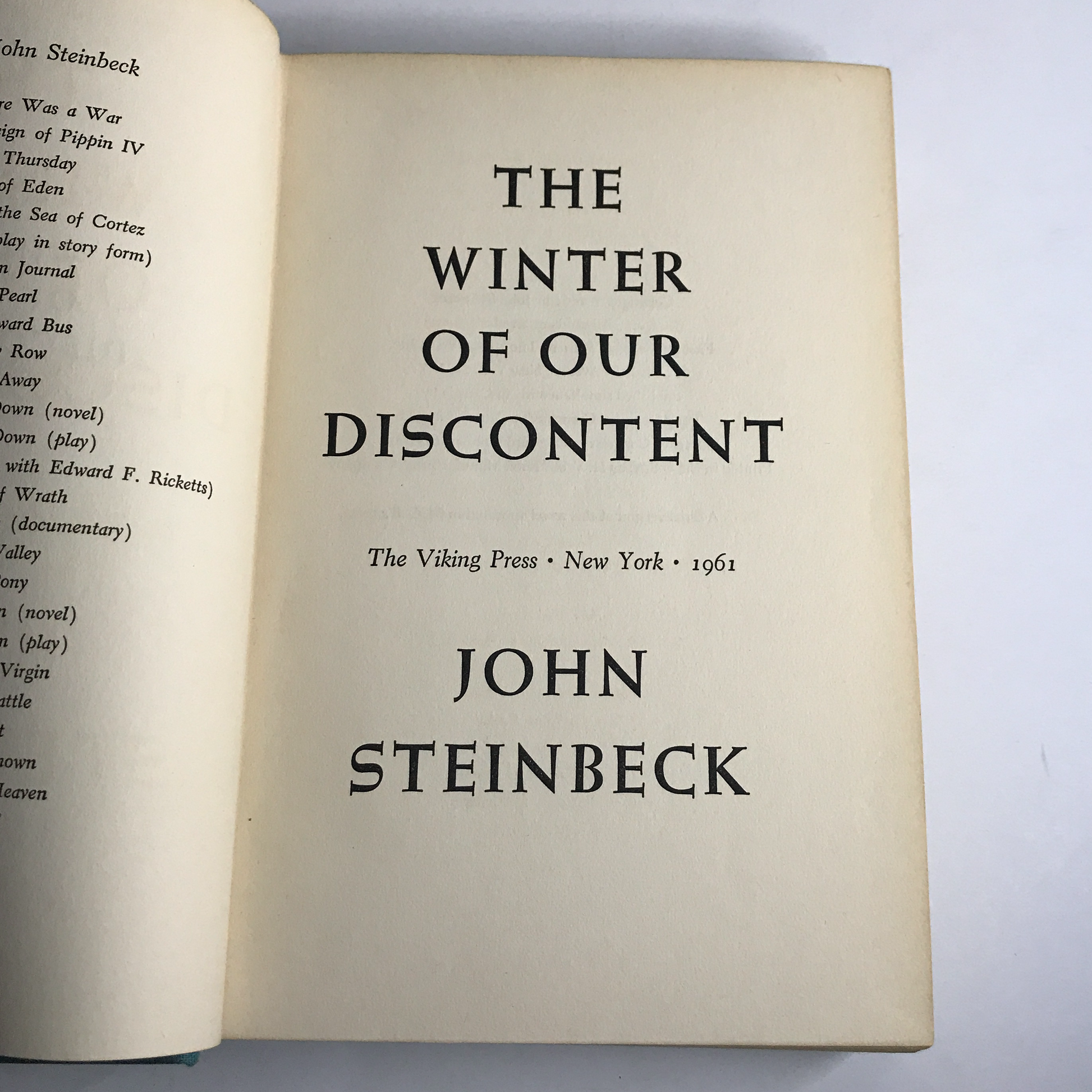 The Winter of Our Discontent - John Steinbeck - 1st Edition - Unknown State - No Dust Jacket - 1961