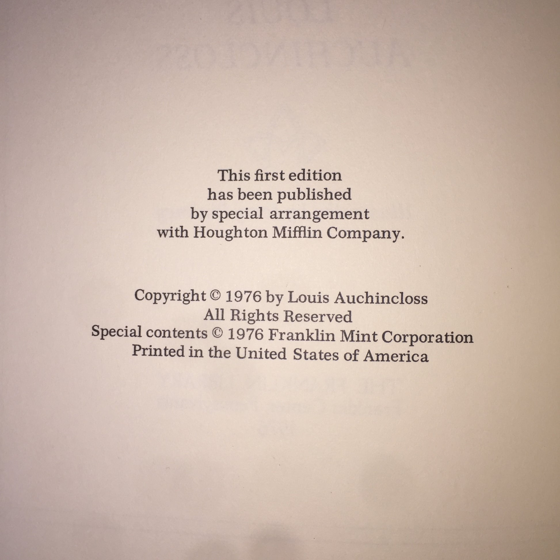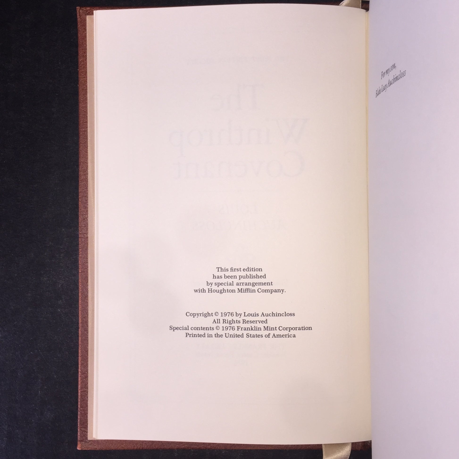 The Winthrop Covenant - Louis Auchincloss - 1st Edition - Franklin Library - 1976