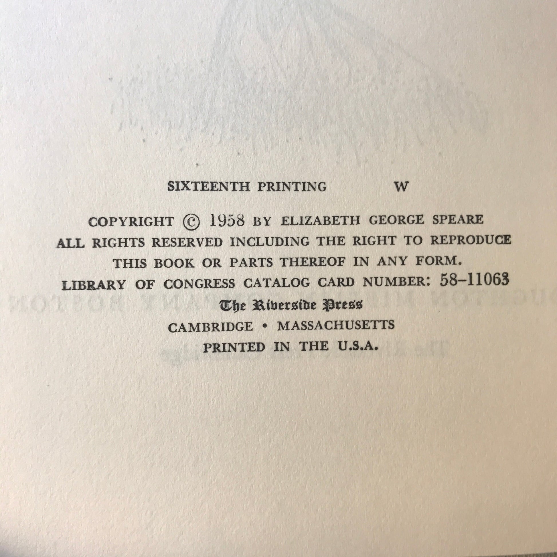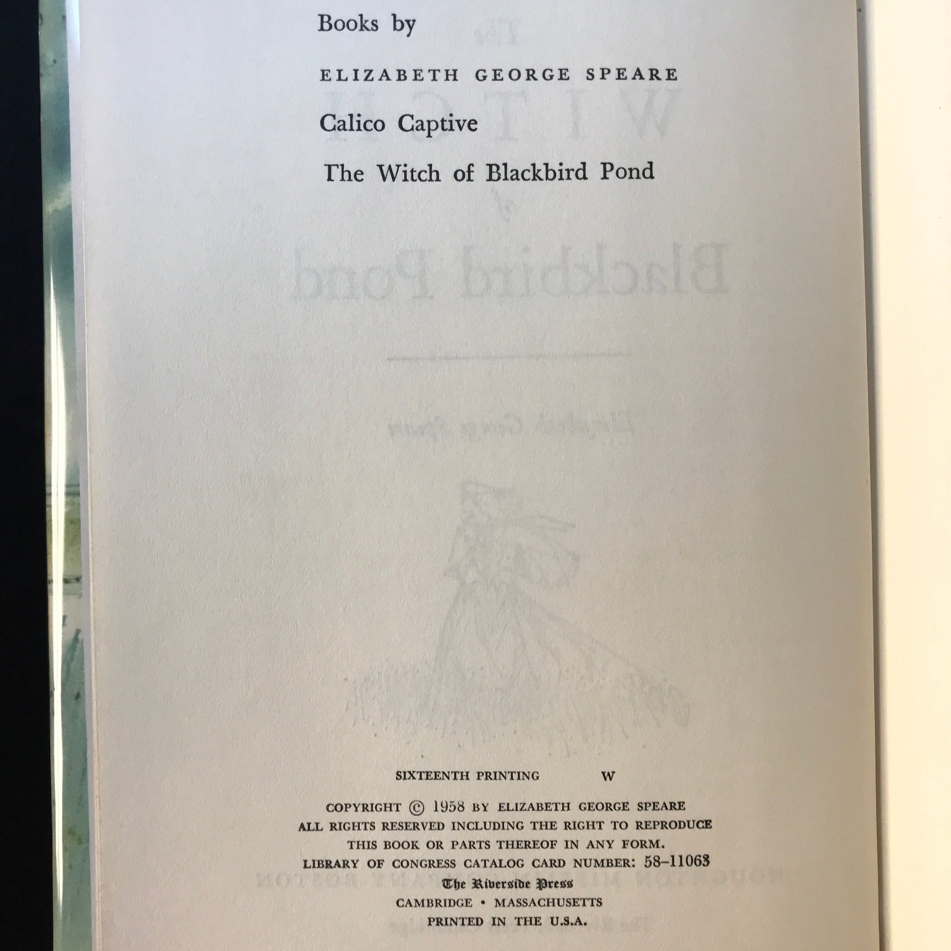 The Witch of Blackbird Pond - Elizabeth George Speare - 16th Printing - 1958