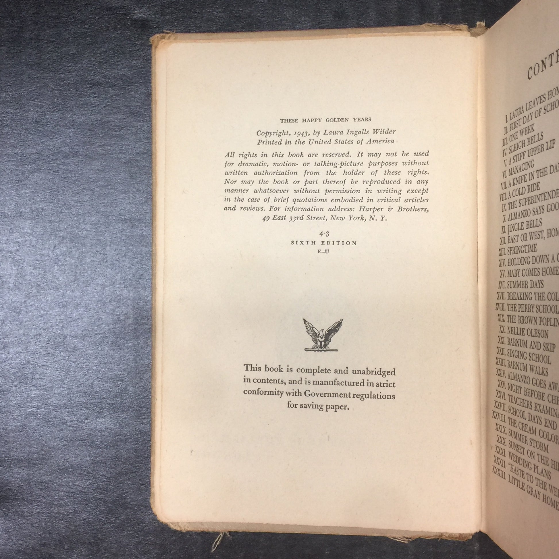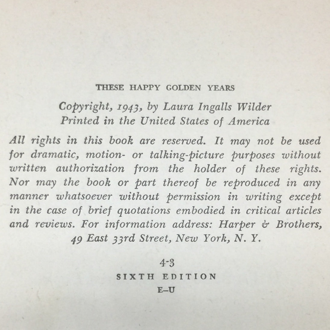 These Happy Golden Years - Laura Ingalls Wilder - Sixth Edition - 1943