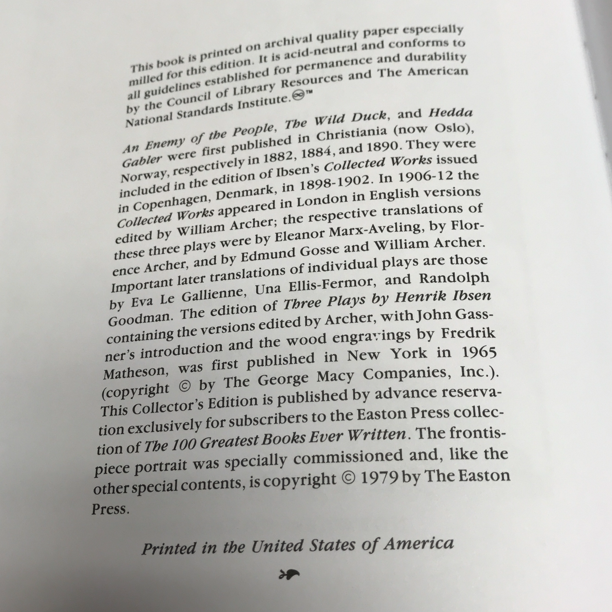 Three Plays - Henrik Ibsen - Easton Press - 1979