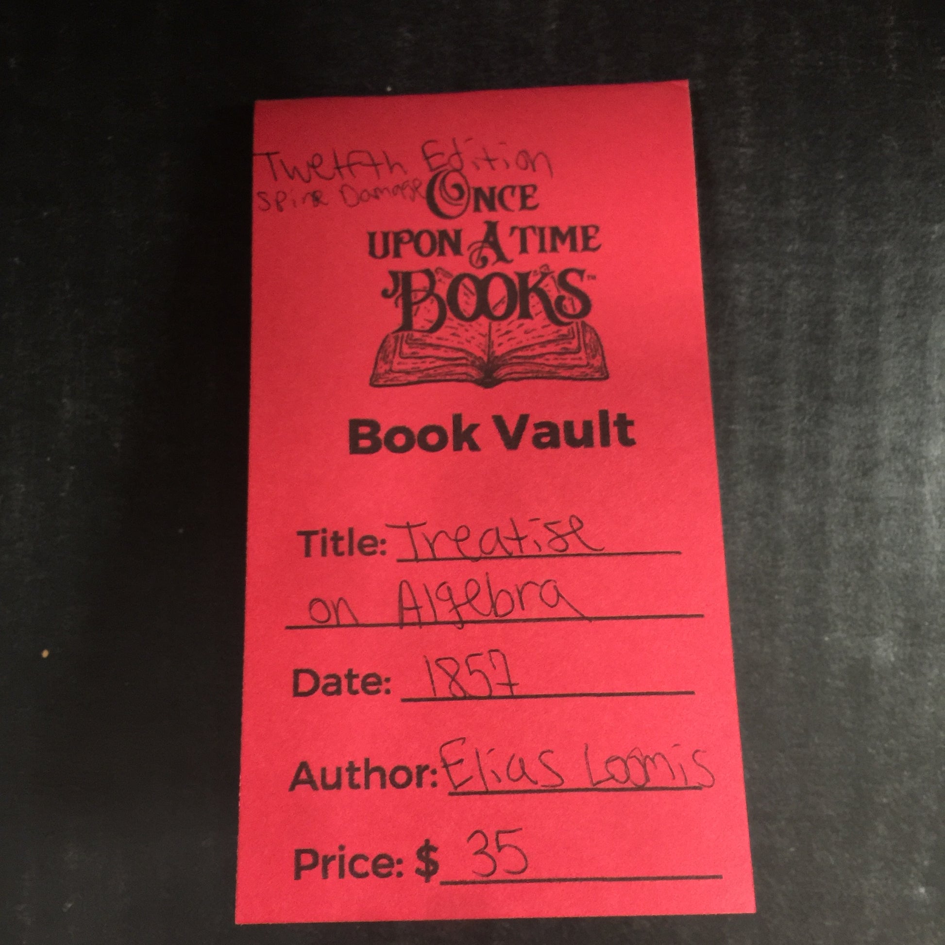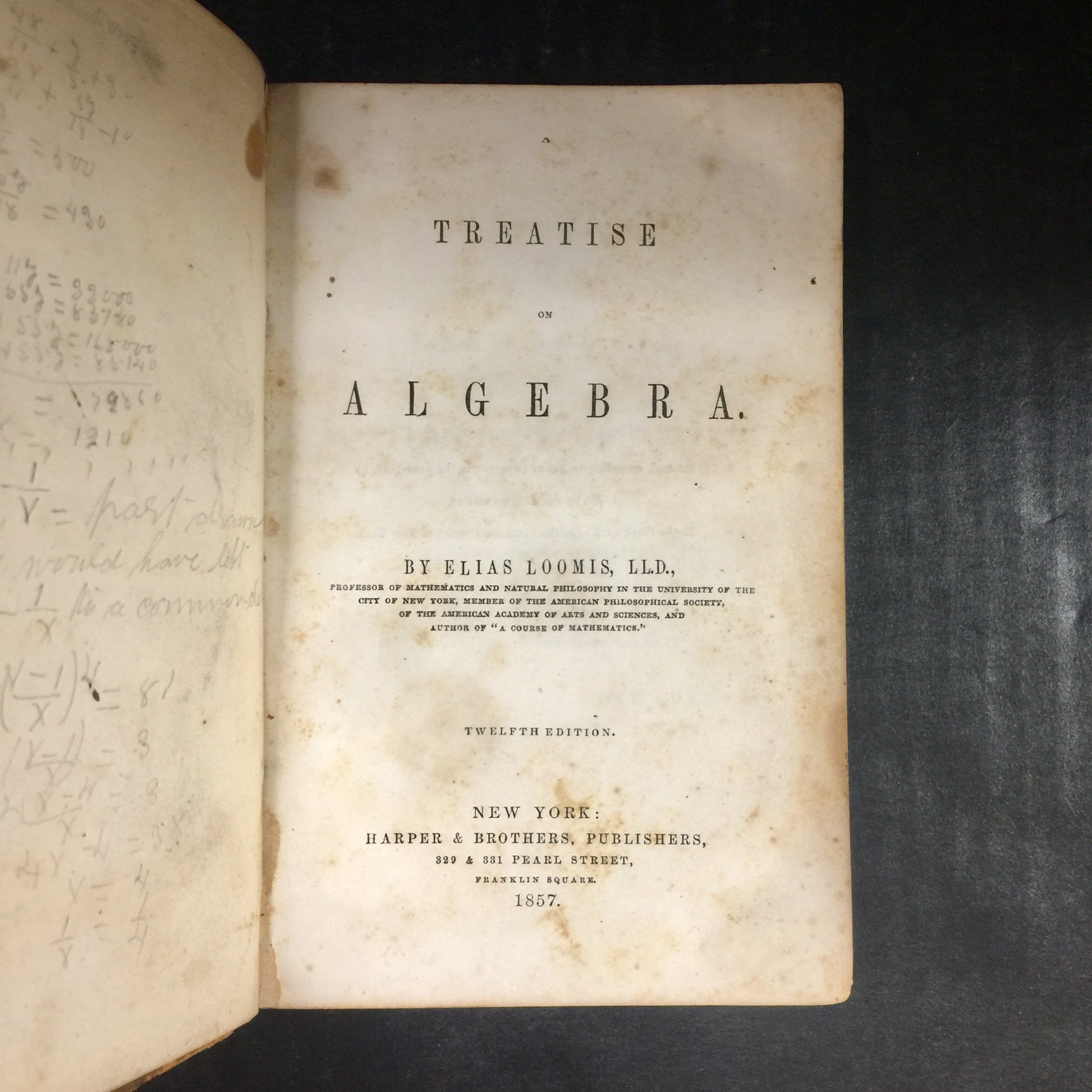 Treatise on Algebra - Elias Loomis - Twelfth Edition - Spine Damage - 1857