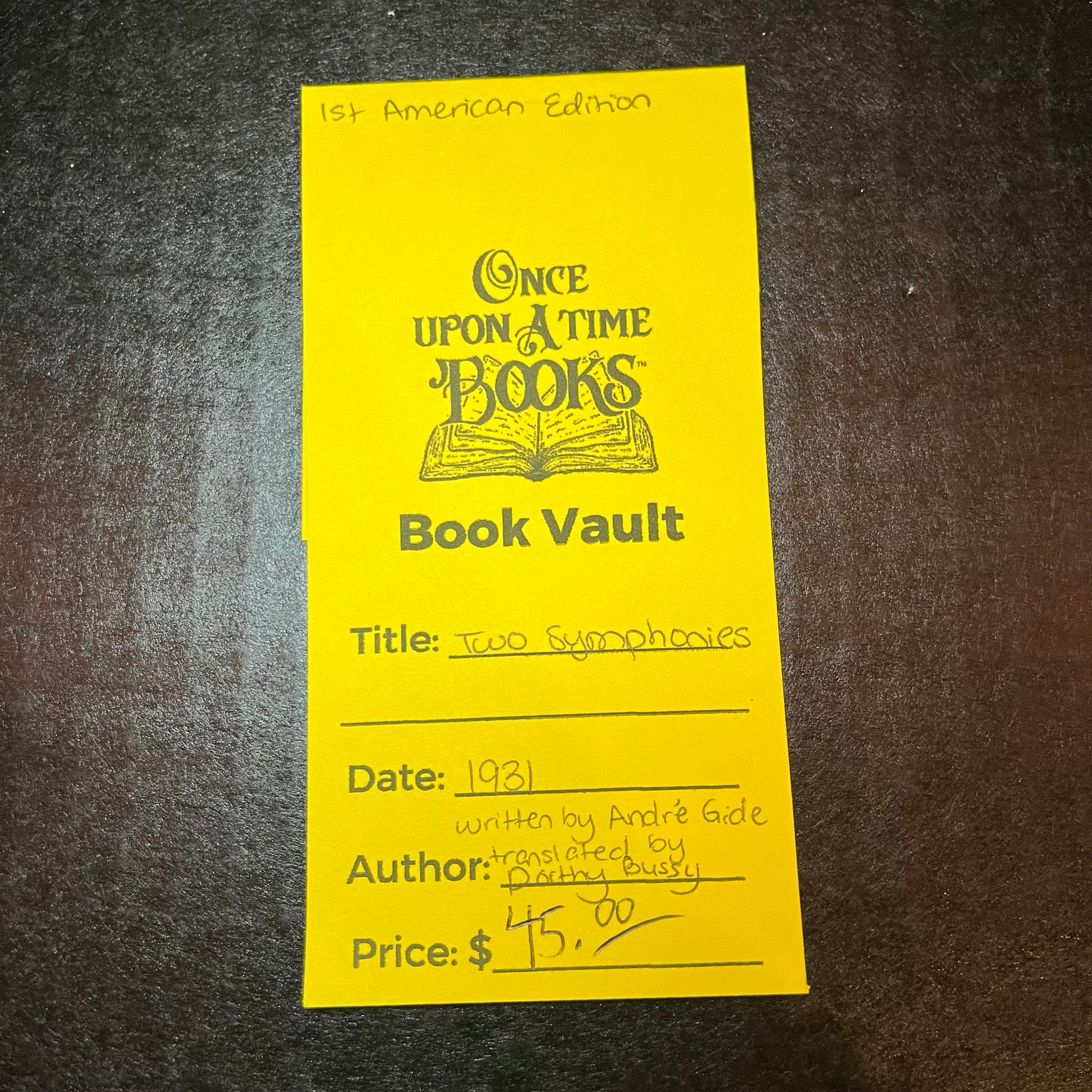 Two Symphonies - André Gide translated by Dorthy Bussy - 1st American Edition
