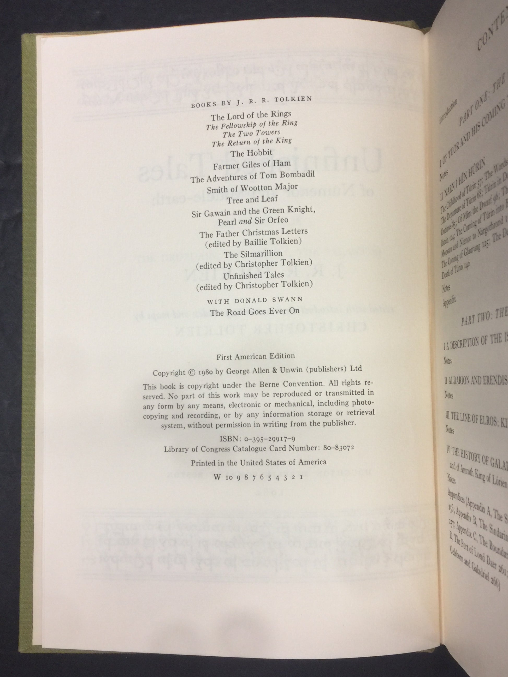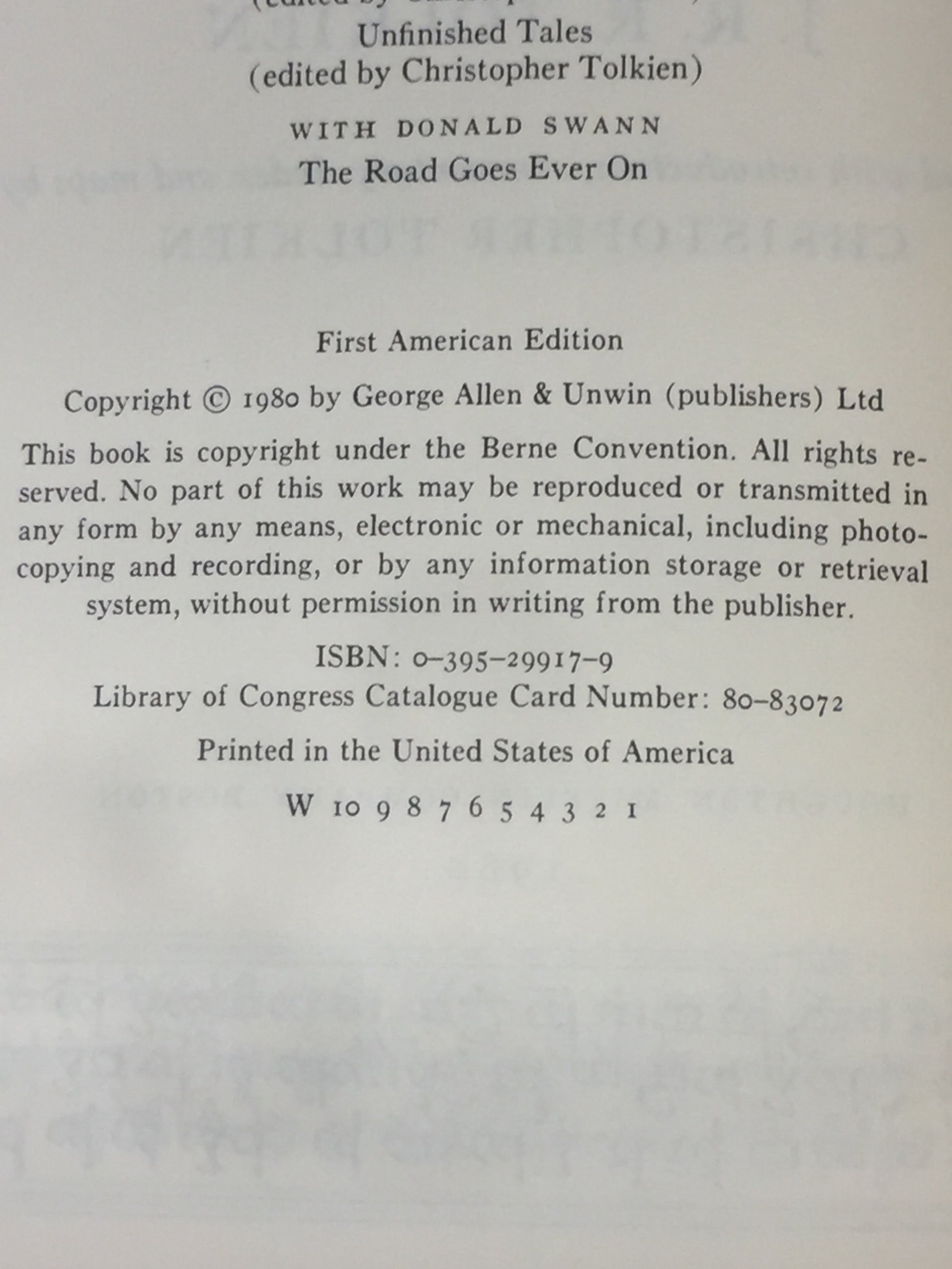 Unfinished Tales - J.R.R. Tolkien - Trade Book Club Edition with Map - 1980