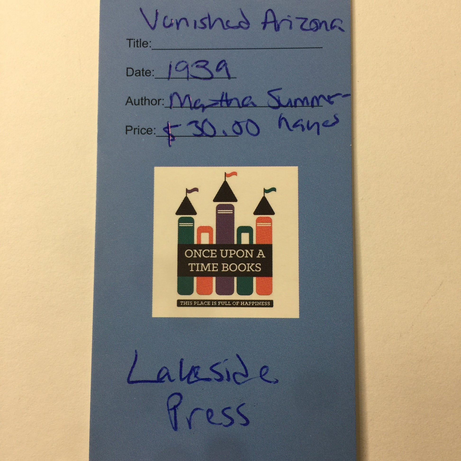 Vanished Arizona - Martha Summerhayes - Lakeside Press - 1939