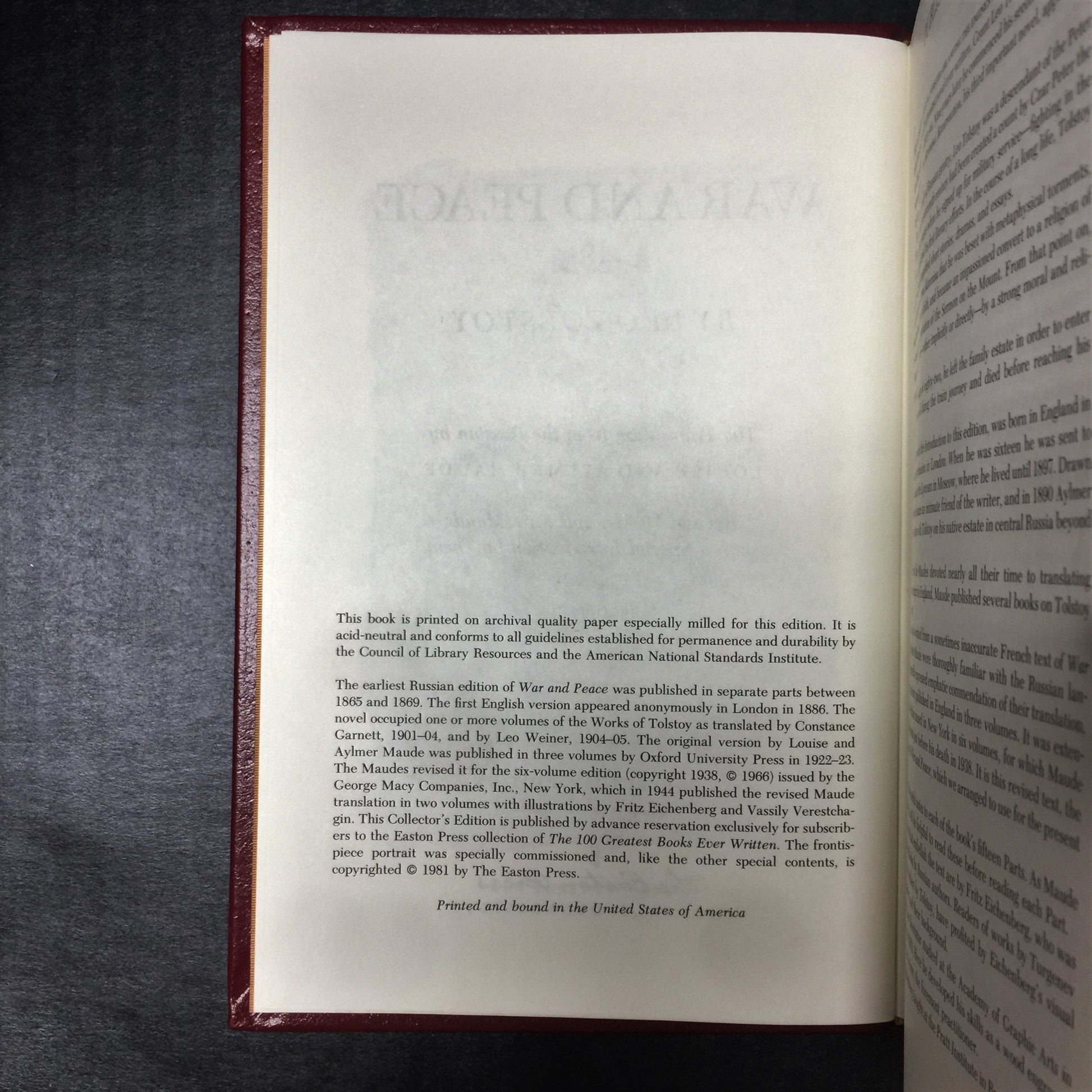 War and Peace - Leo Tolstoy - Easton Press - 1981