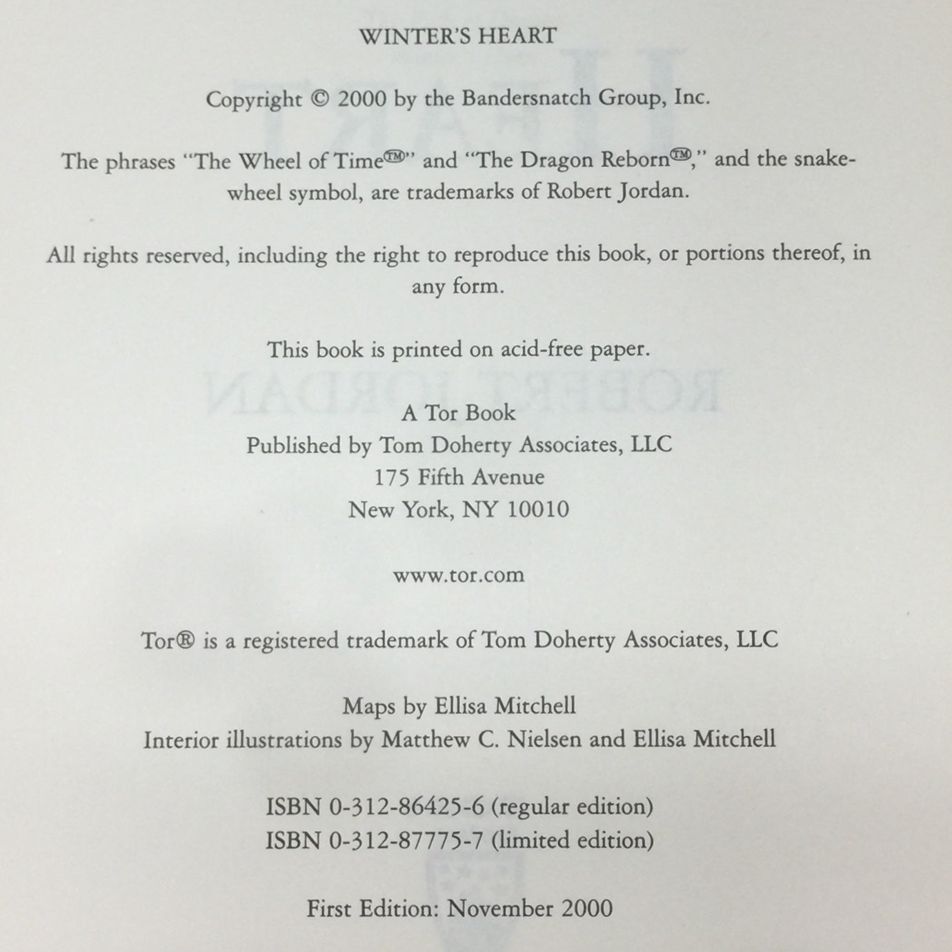 Winter's Heart - Robert Jordan - First Edition - 2000