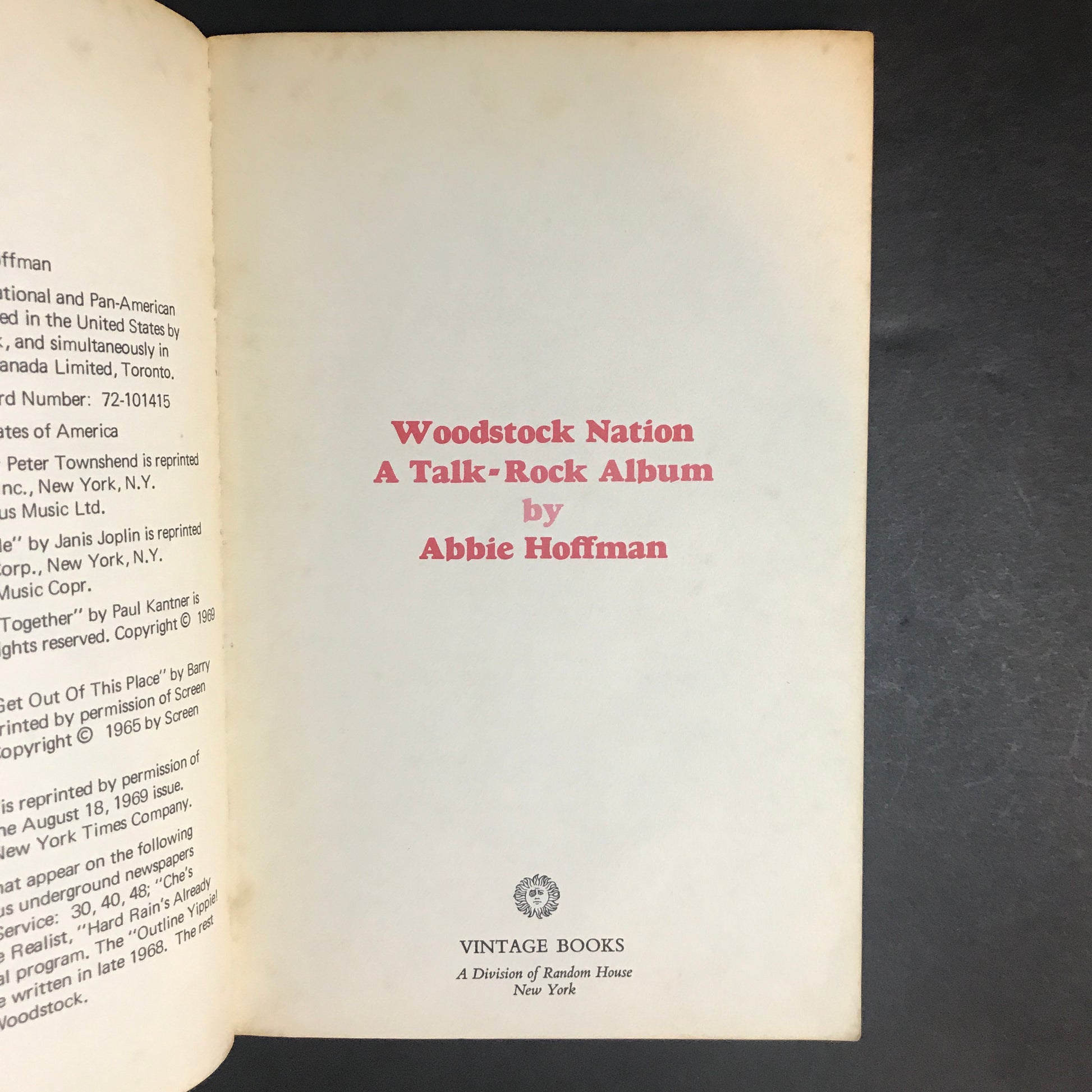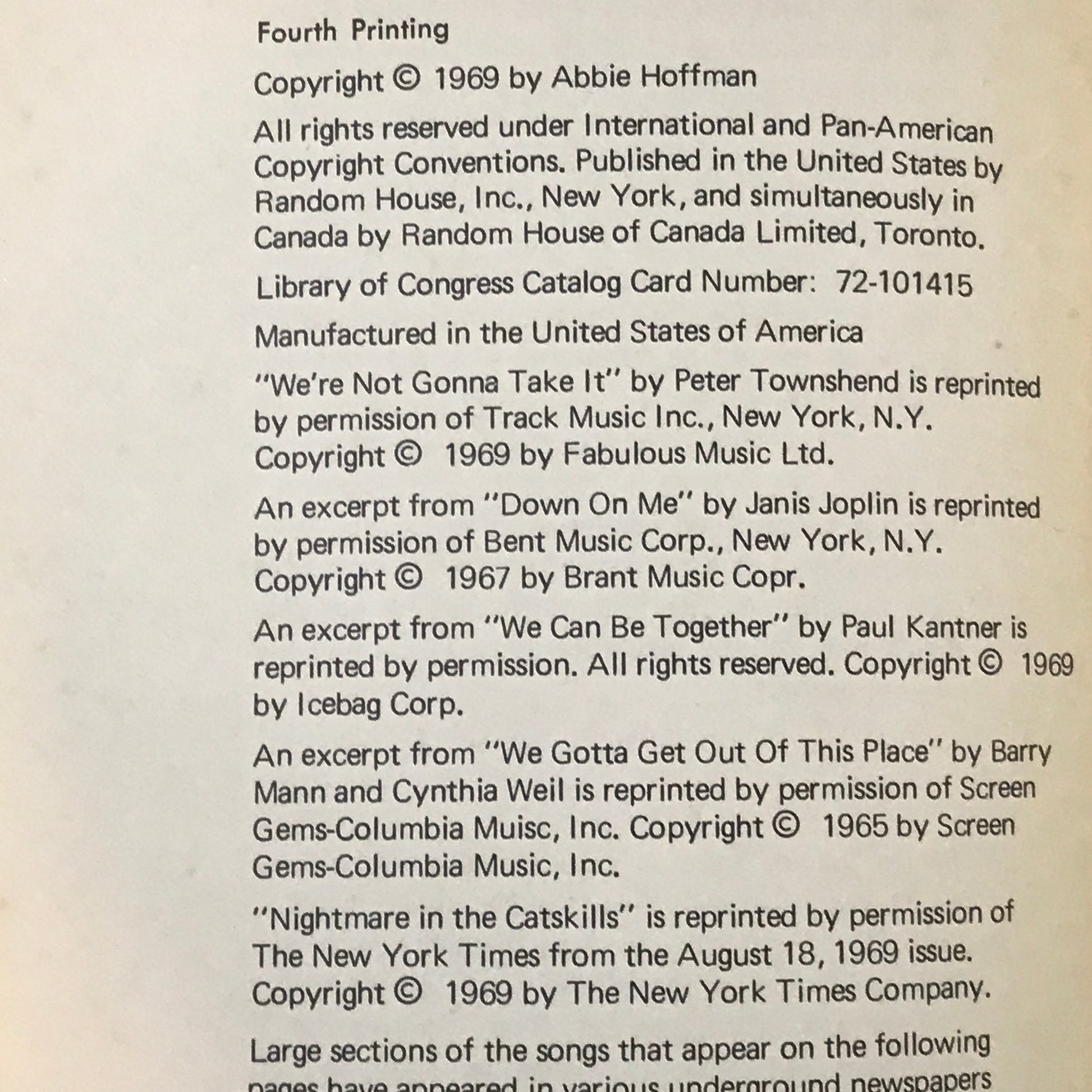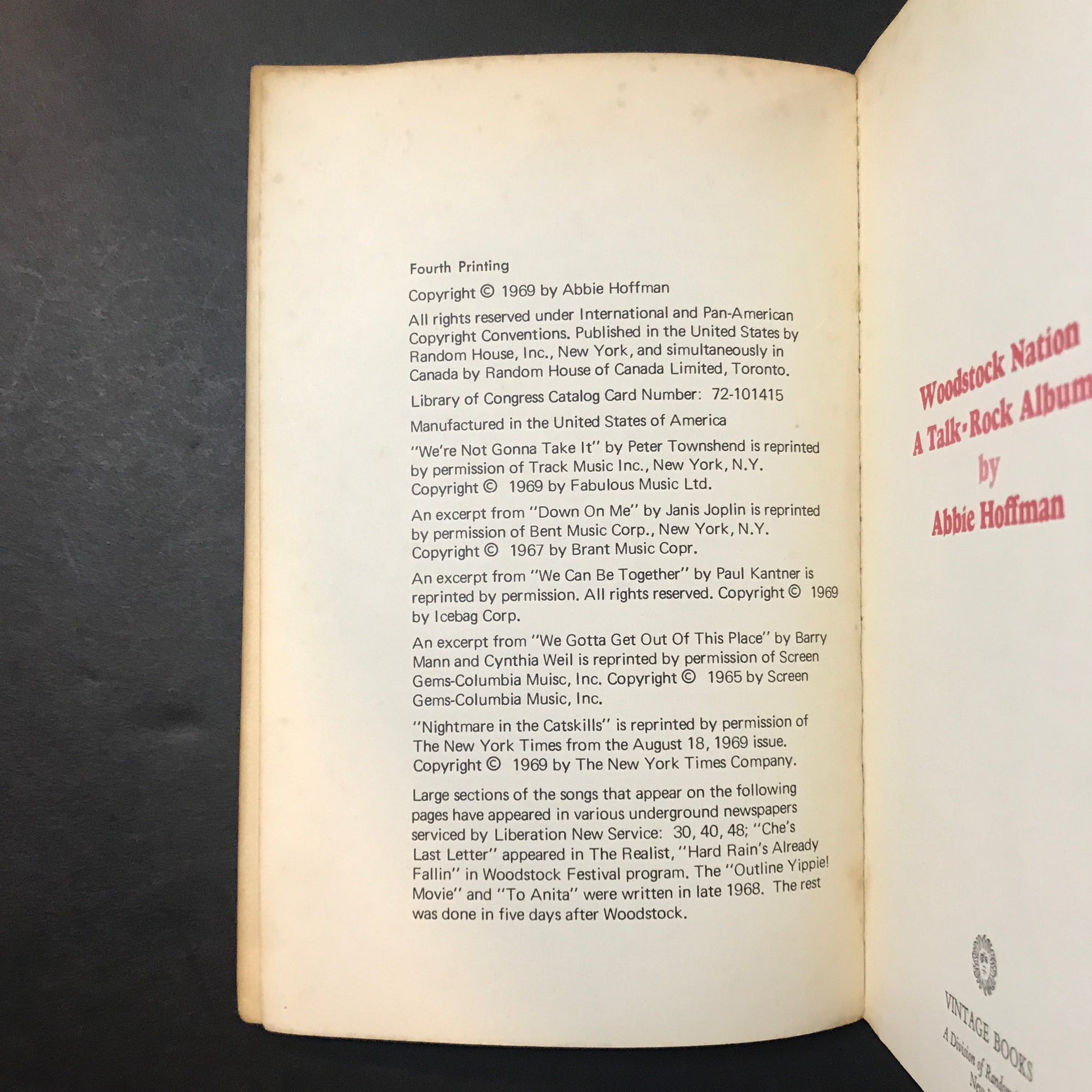 Woodstock Nation - Abbie Hoffman - Fourth Printing - 1969