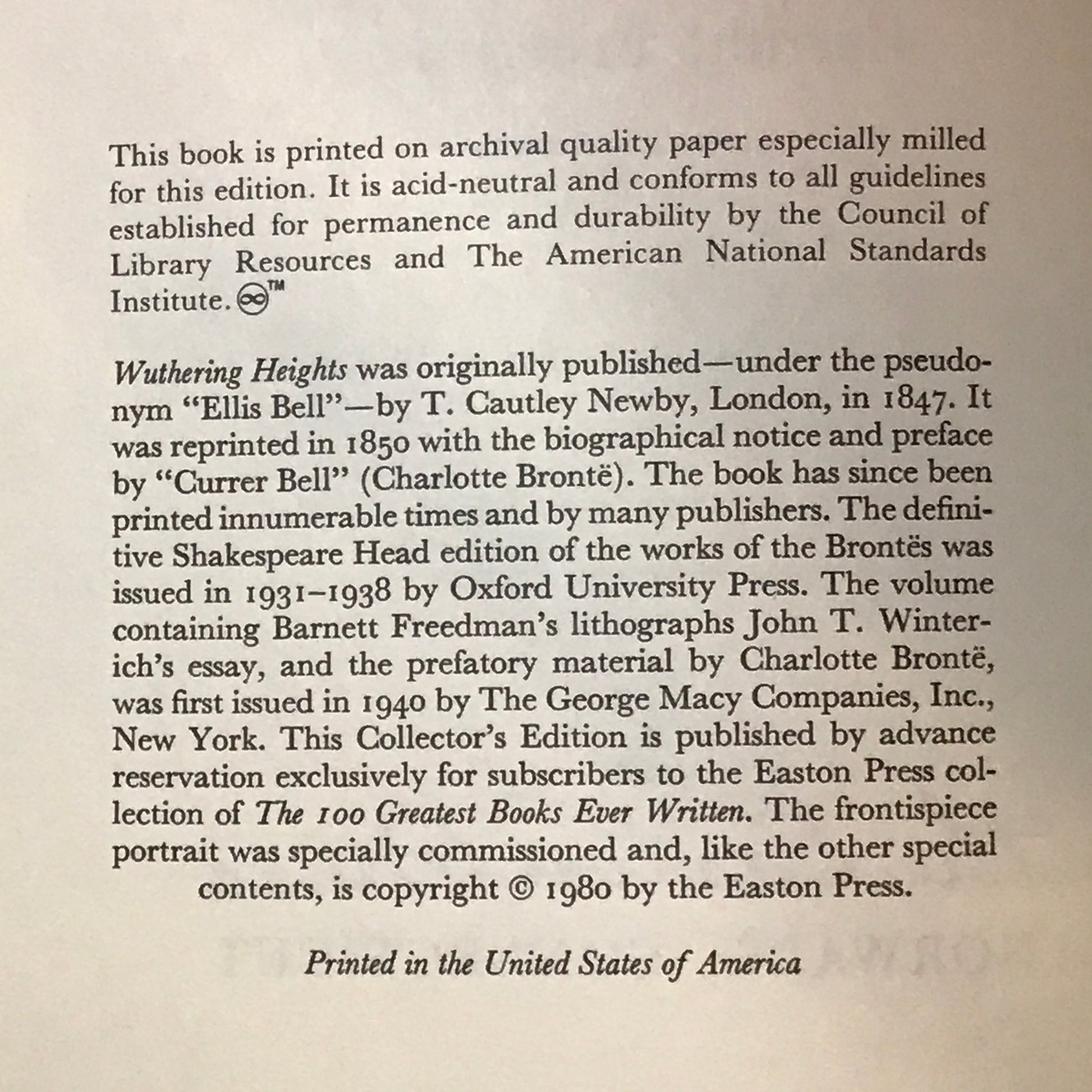 Wuthering Heights - Emily Bronte - Easton Press - 1980